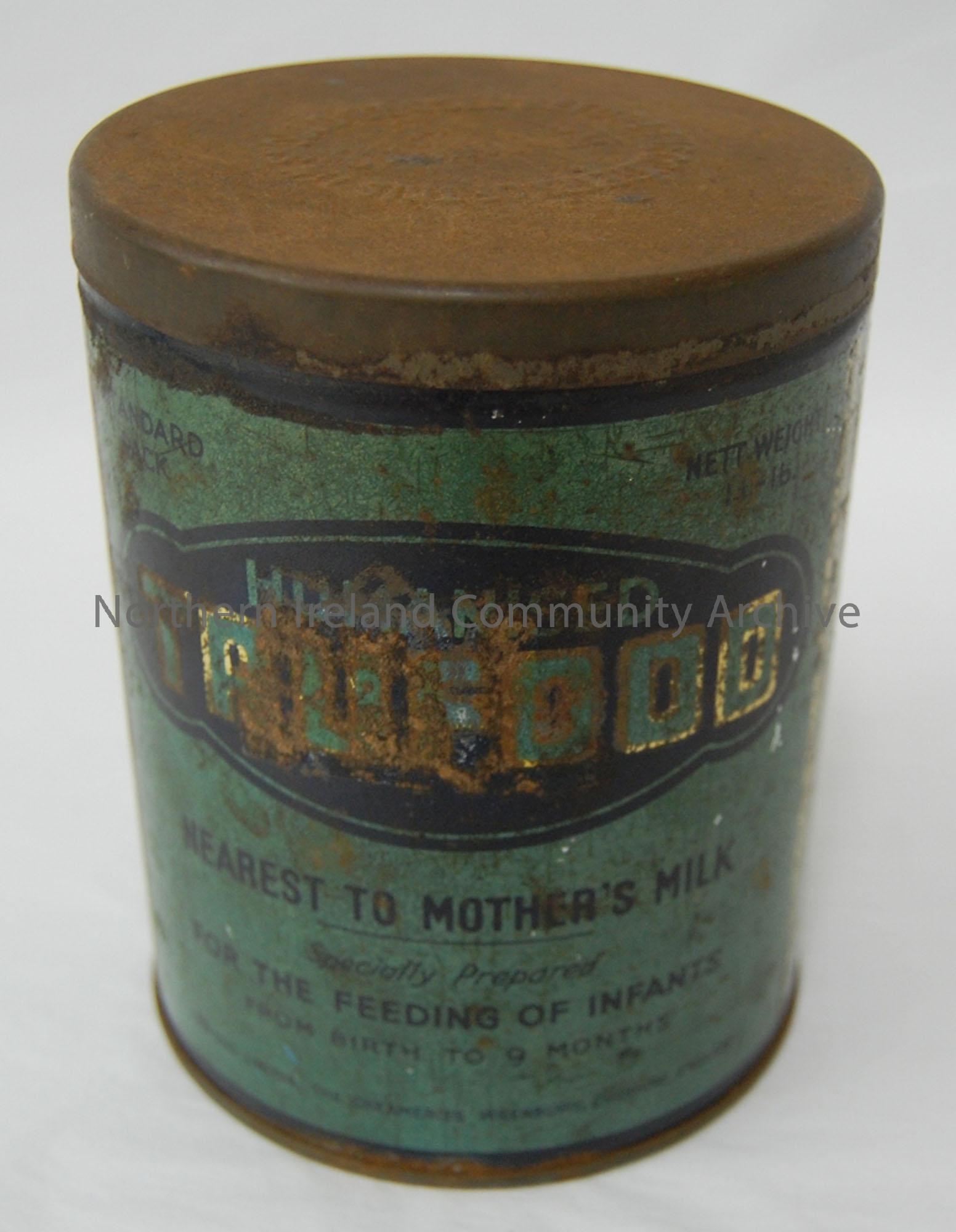'Humanised trufood' tin.Contained milk powder for the feeding of infants from birth to 9 months. Standard pack, Nett weight 1 1/2- Ib.