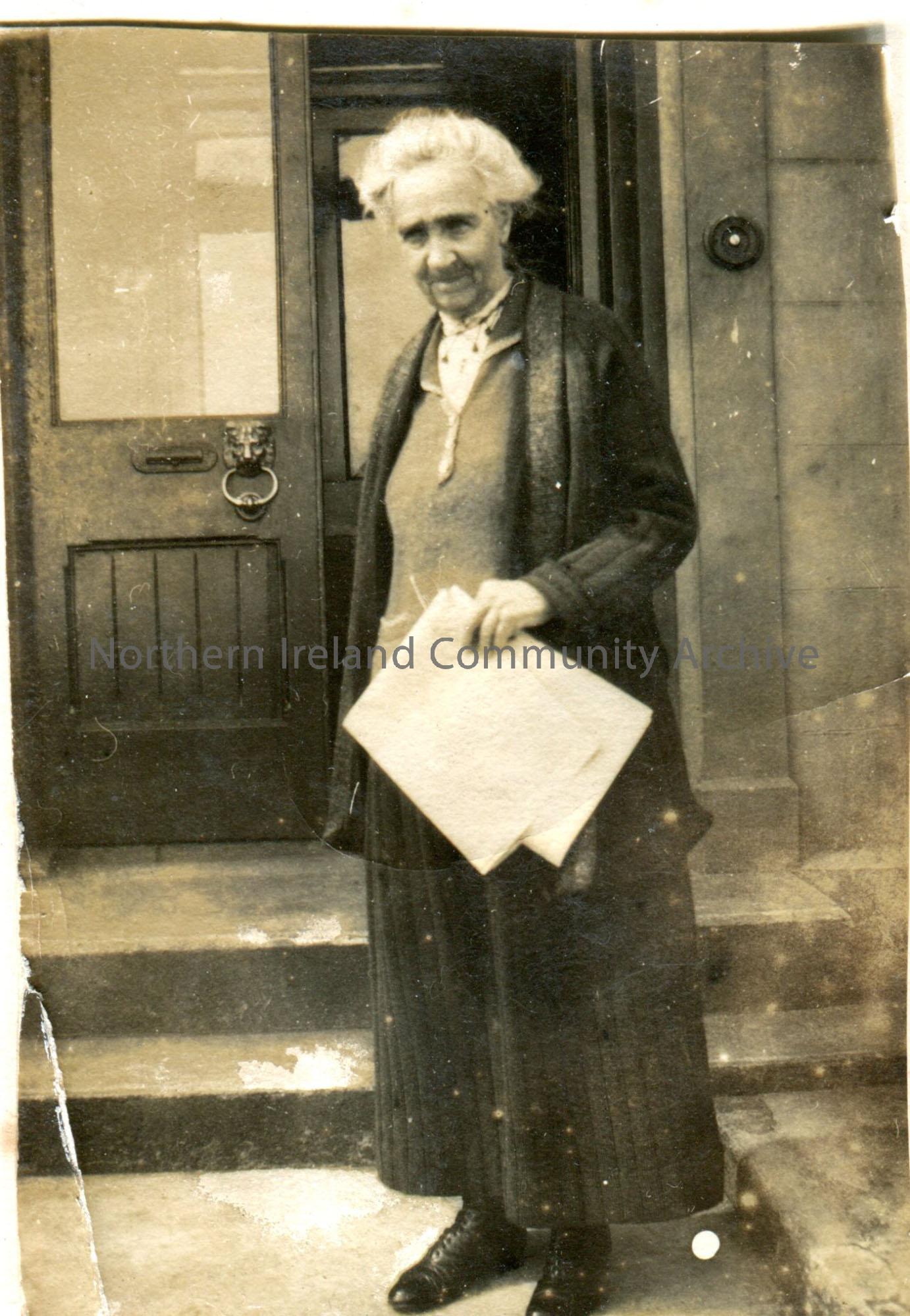 Illuminated "Address and Presentation" dated April 1924, presented to Miss Hamilton by members of the Portrush Urban District Council and the people of Portrush. Miss Hamilton was a member of Portrush Urban District Council, chairman for five years. Features watercolour painting of Portrush town hall. Three black and white photographs re Portrush inside the address.