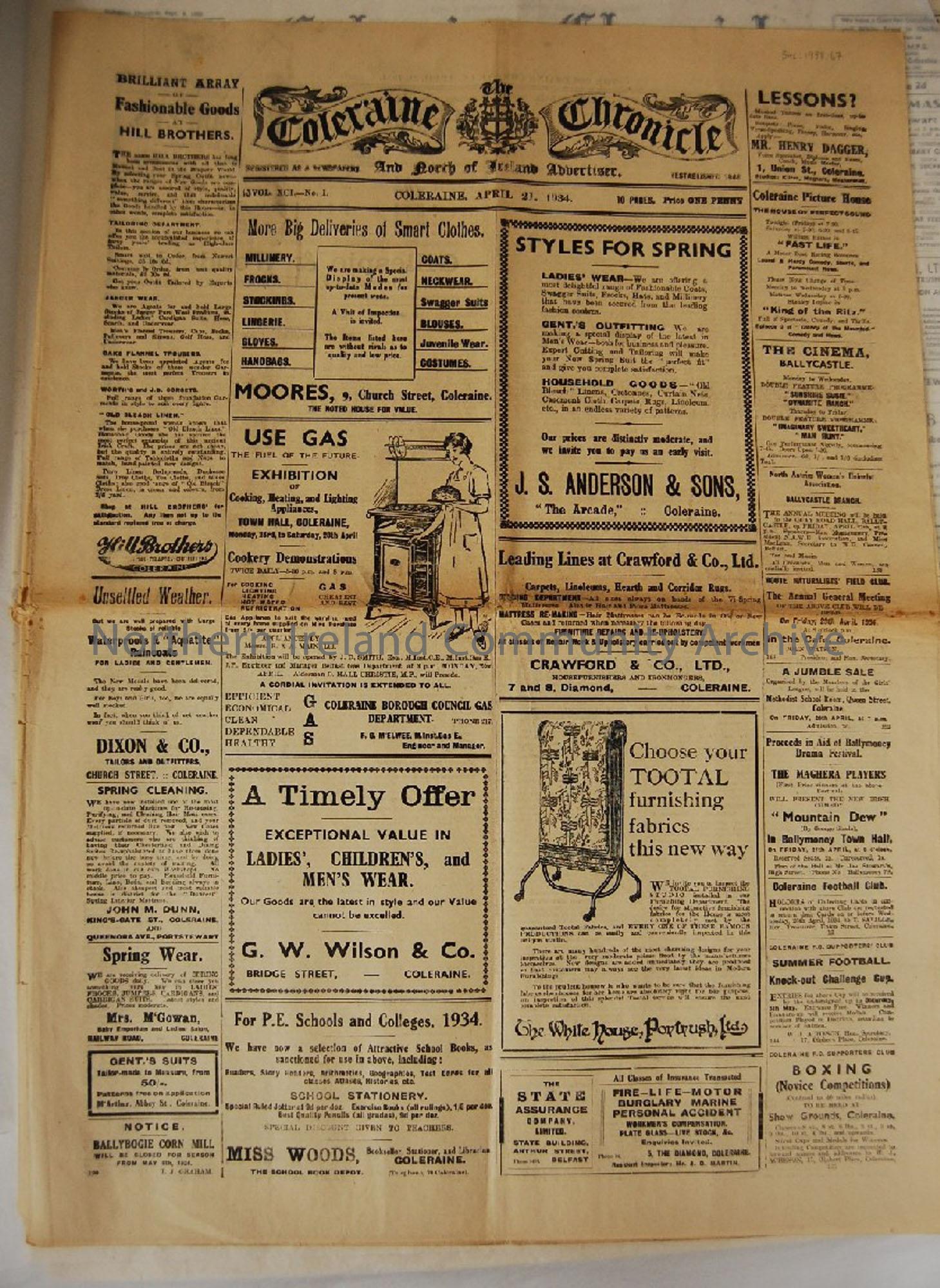 Includes cinema programmes, entertainment details, adverts etc, sport, an accident at Magherafelt railway station, comments on NI tourism.