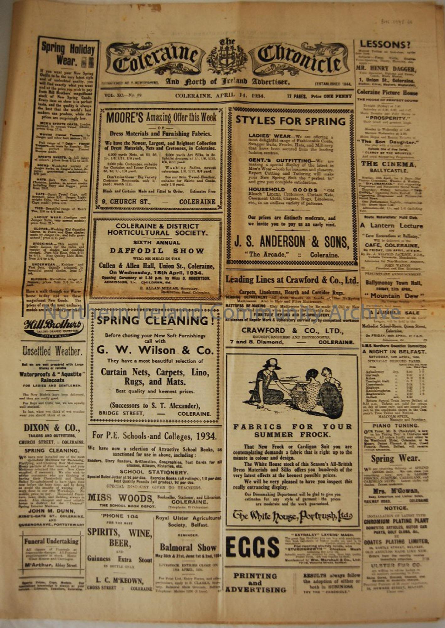 Includes cinema programmes, entertainment details, adverts etc, sport, important finds in the caves at Ballintoy