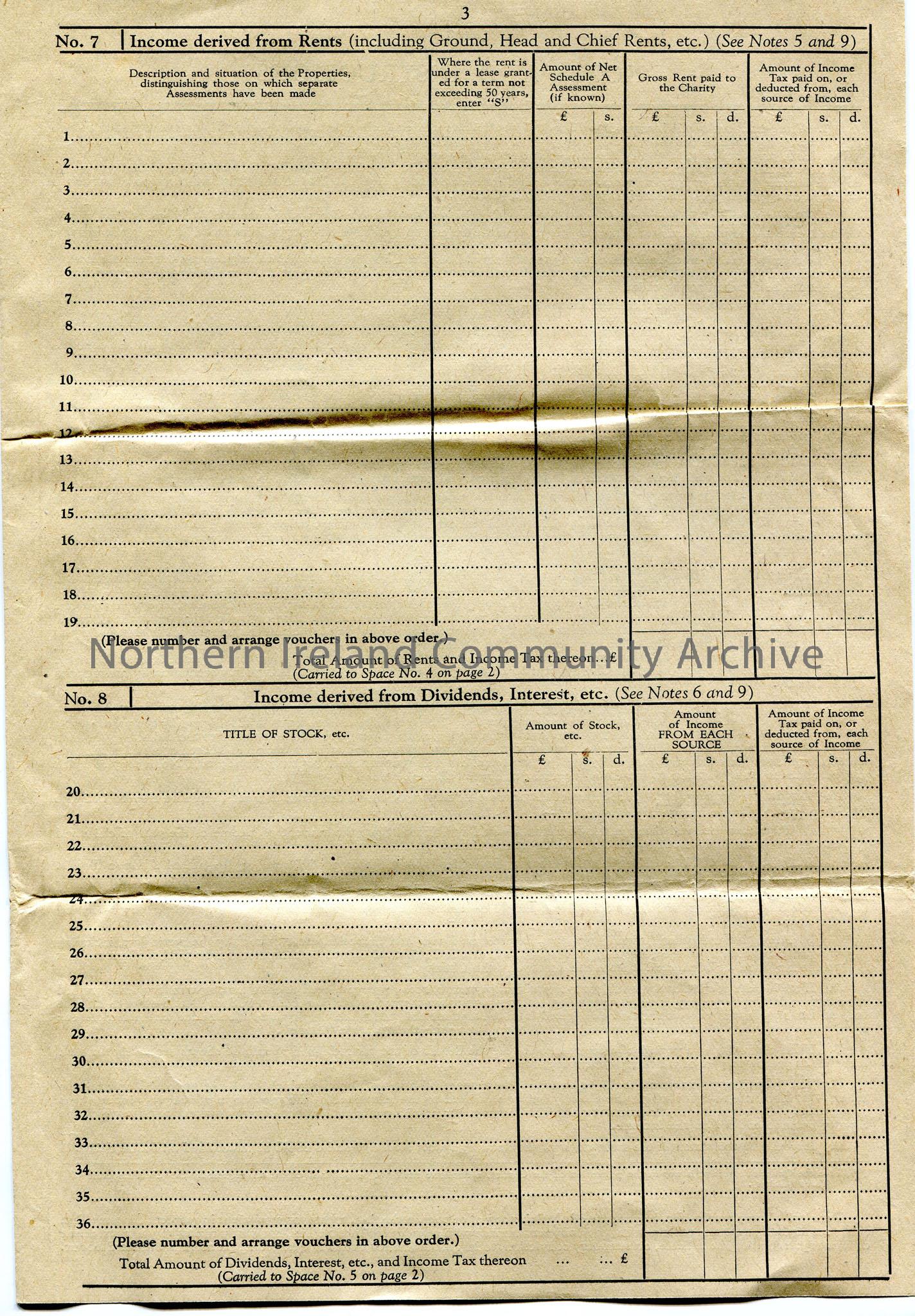 Income Tax Repayment Claim form. In booklet form. ‘Rice Bequest, Coleraine, Killowen and Portrush’ written on top of form. Reference No X388. Last rep… – scan227c