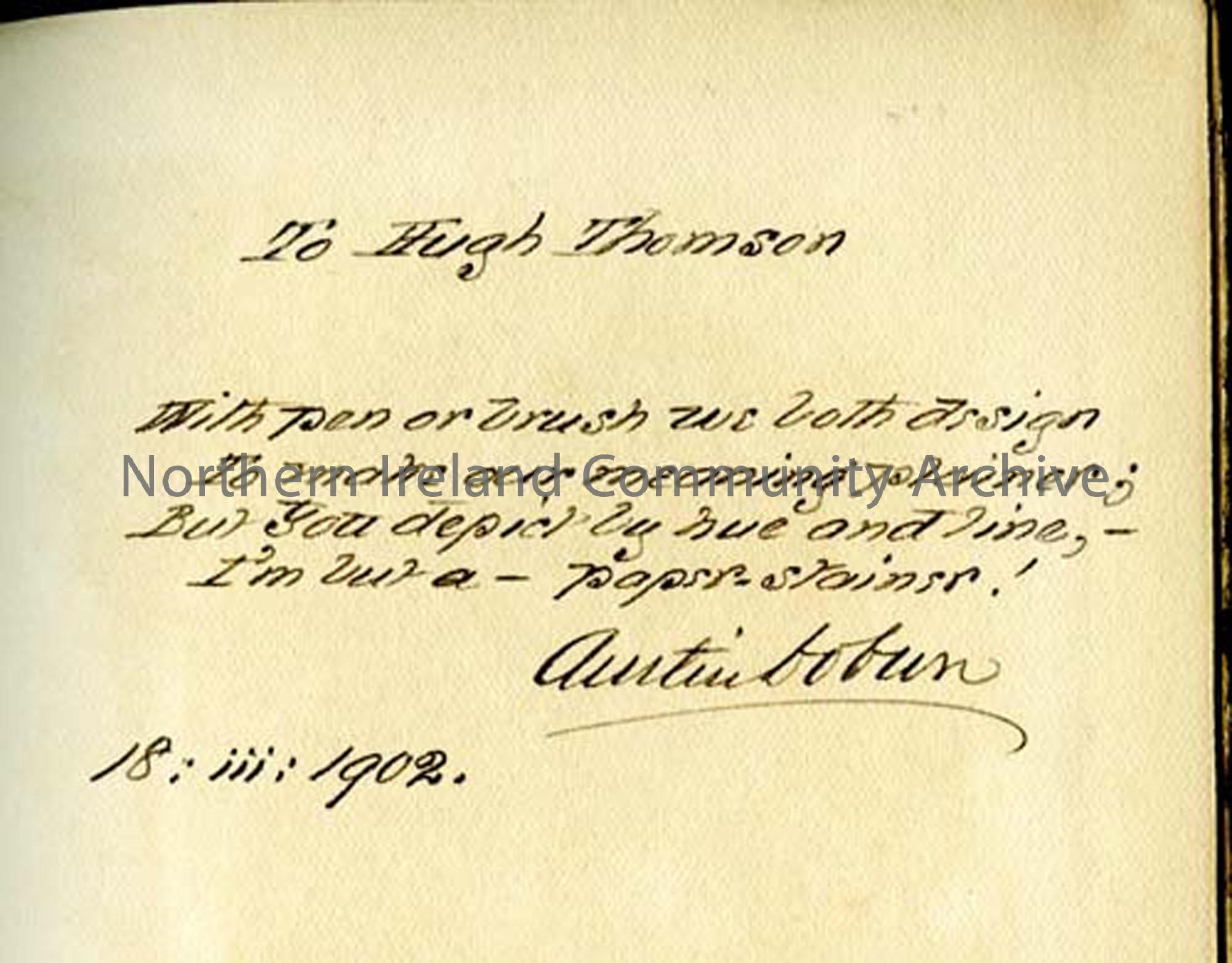 Inscription by Austin Dobson to Hugh Thomson