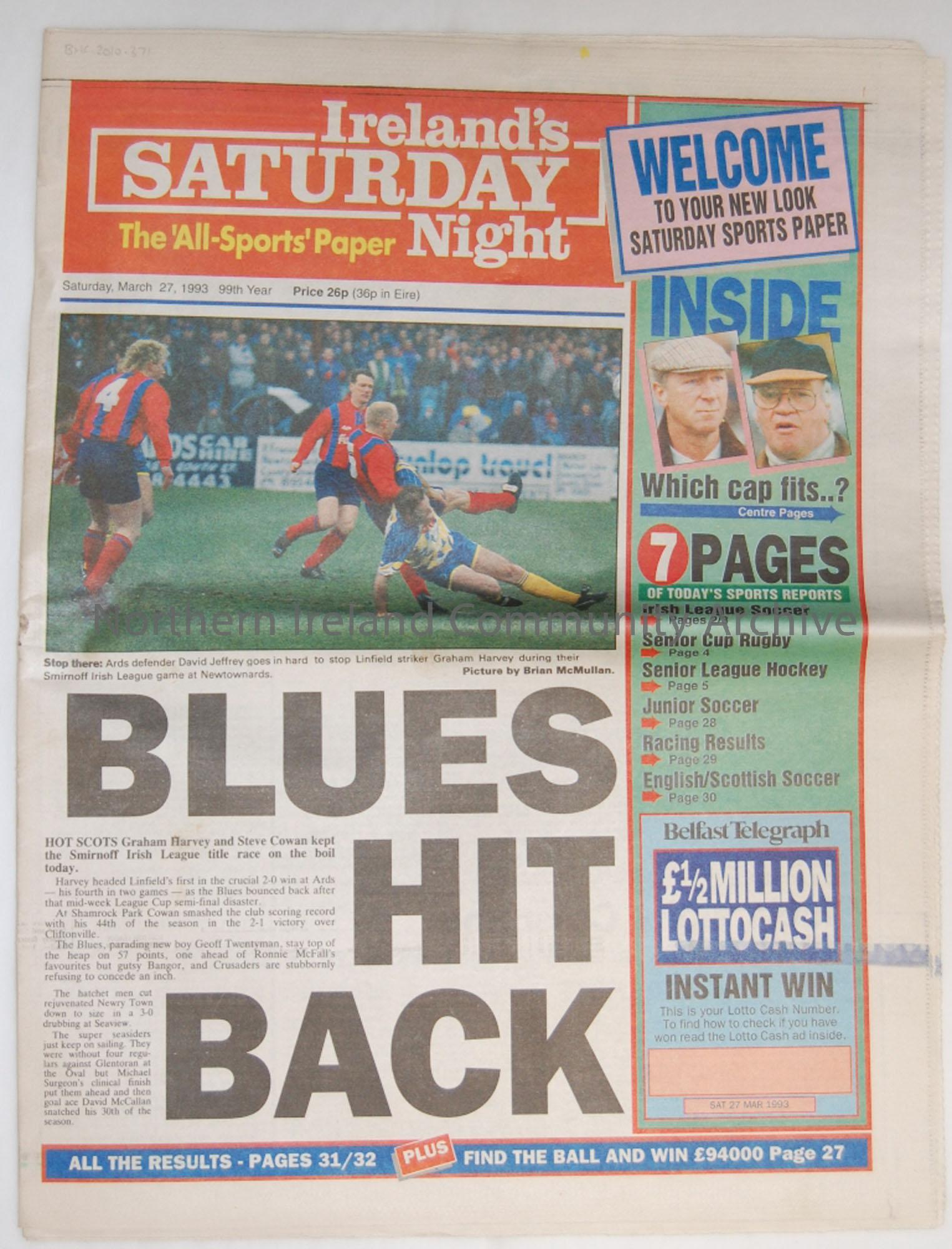 Ireland’s Saturday Night. The ‘All- sports’ paper. Saturday, March 27, 1993. 99th year. Price 26p (36p in Eire)