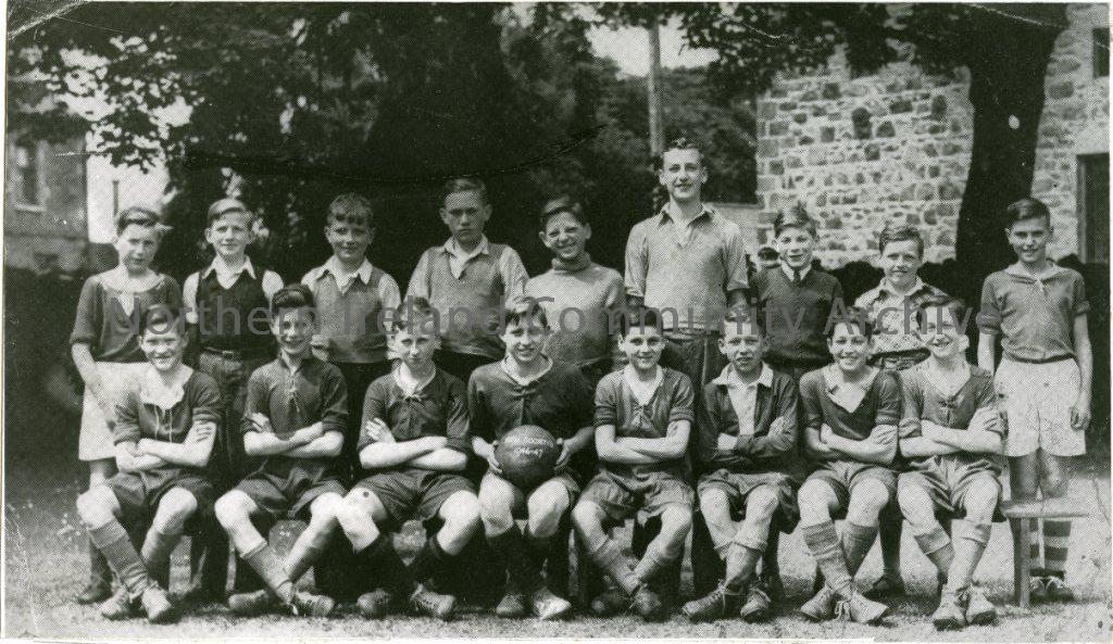 Irish Society’s School Team, 1947: Back Row- A. Dealey, G. Leslie, D. Sheppard, J. McClements, J. Leighton, A. Anderson, R. Fillis, J. Barbour, R. Crawford. Front Row- M. Clarke, H. Kane, L. Pigott, N. Cochrane, R. Nevin, D. Mairs, C. Glass. (3492)