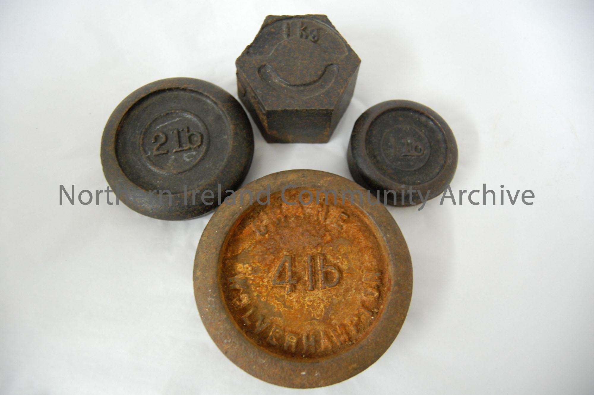 Iron Weights, 1 X 4lb, 3 X 2lb, 1lb, 8oz, 4oz, 2oz, 1oz. For Scales see BHC: 1997.5