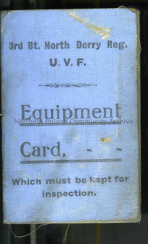 James Henry’s equipment card for 3rd battalion North Derry Regiment of the UVF – notes James has been supplied with hat and putties as uniform
