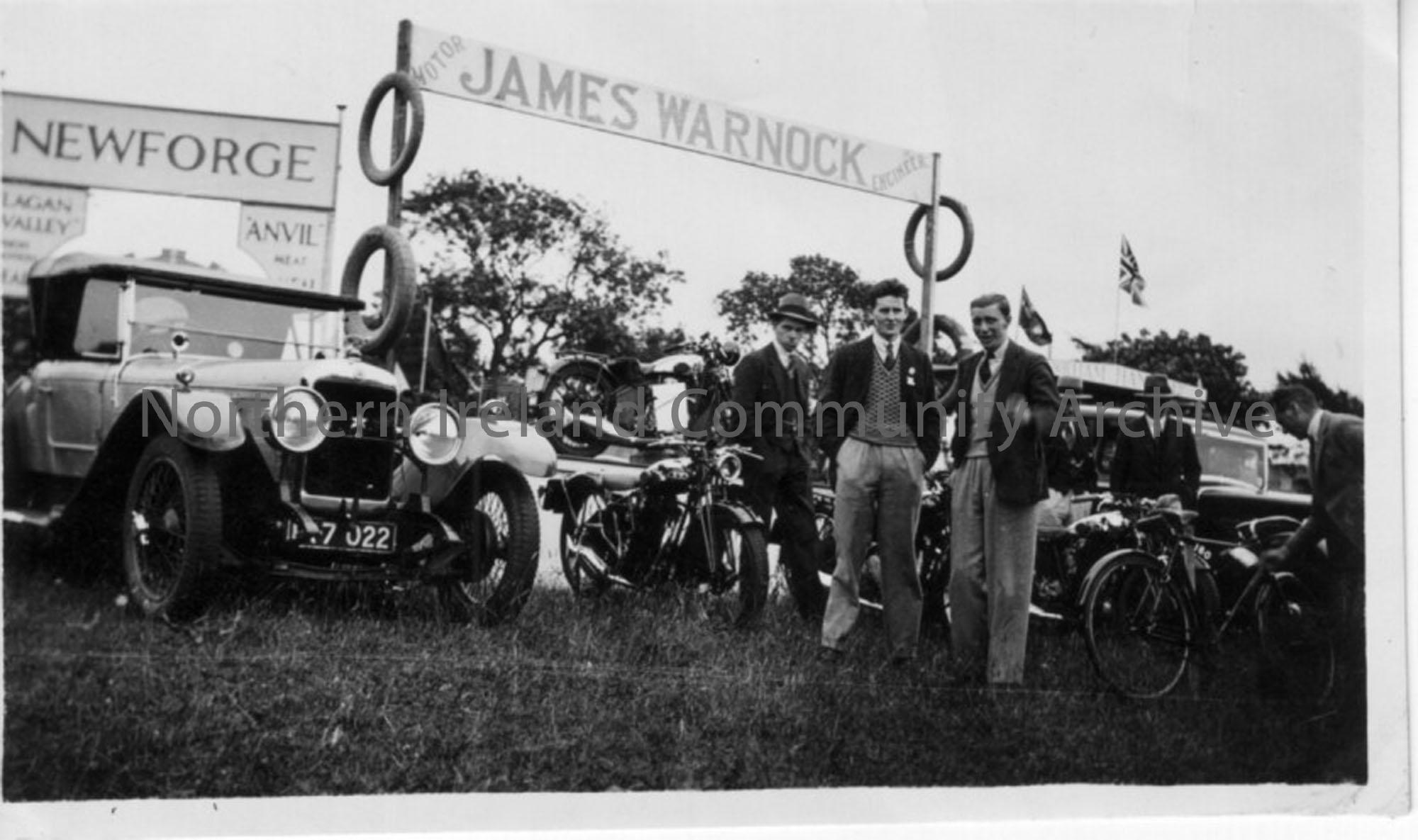 James Warnock’s Motor Vehicle stand. Donor’s father stands in centre with two other men