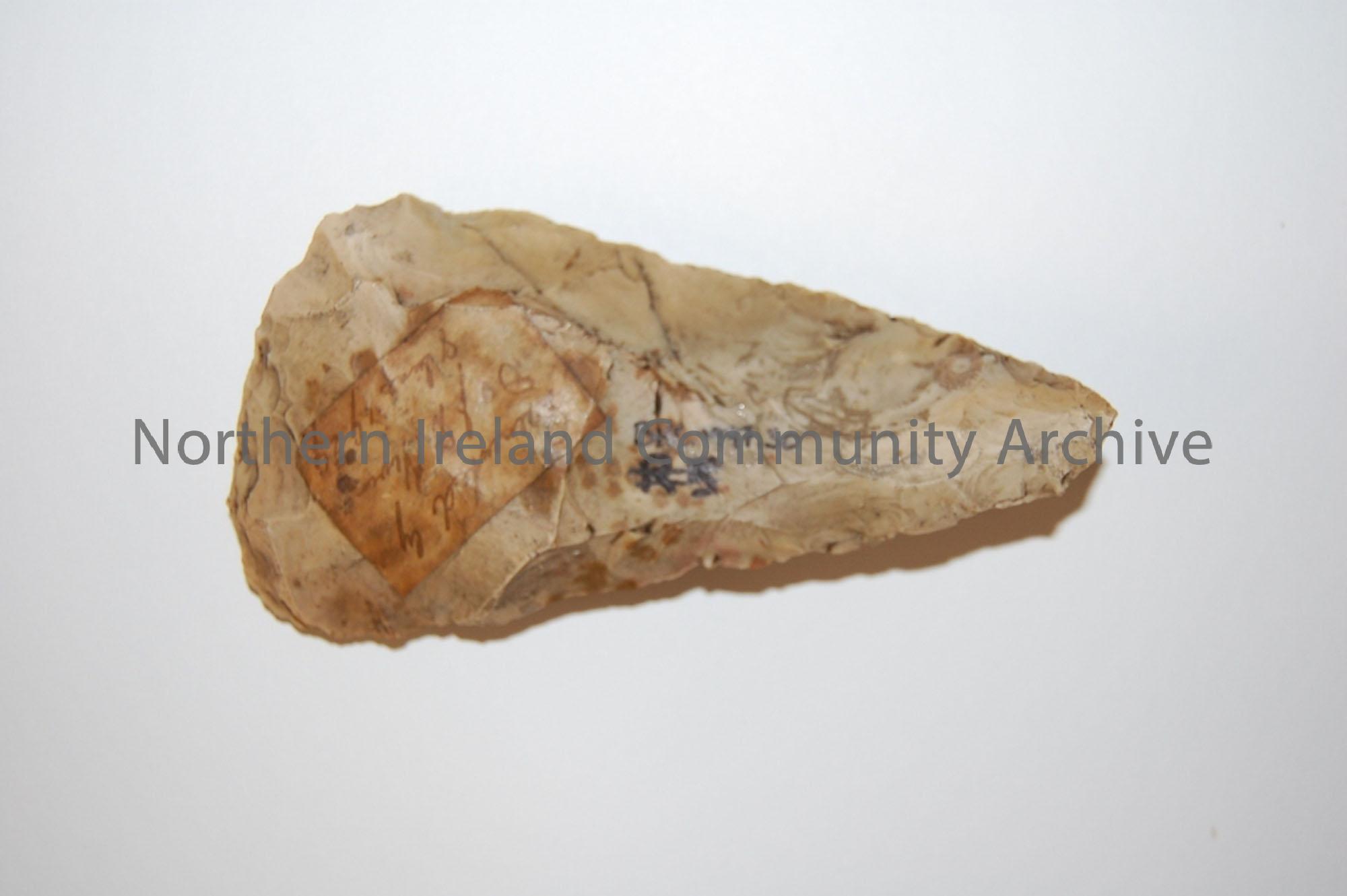 arrowhead, yellow brown flint, long triangular ...