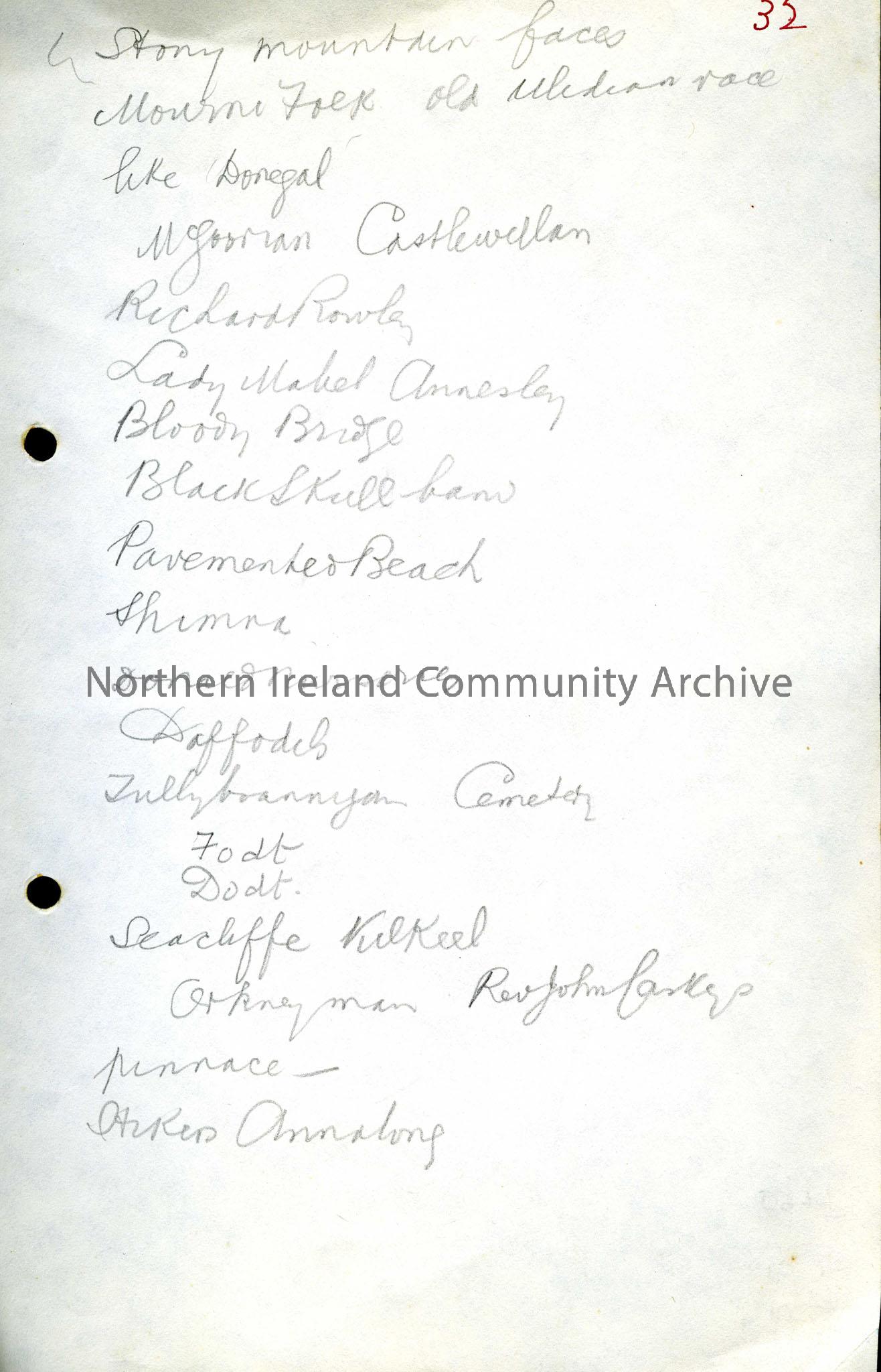 Jottings on Co. Down including place names and names of people.
