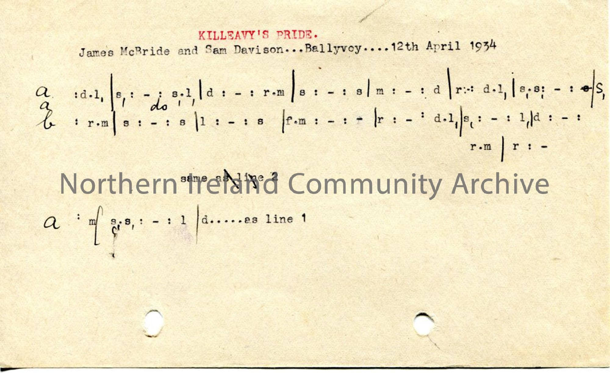 Typed tonic sol-fa notation to 'Killeavy's Pride'