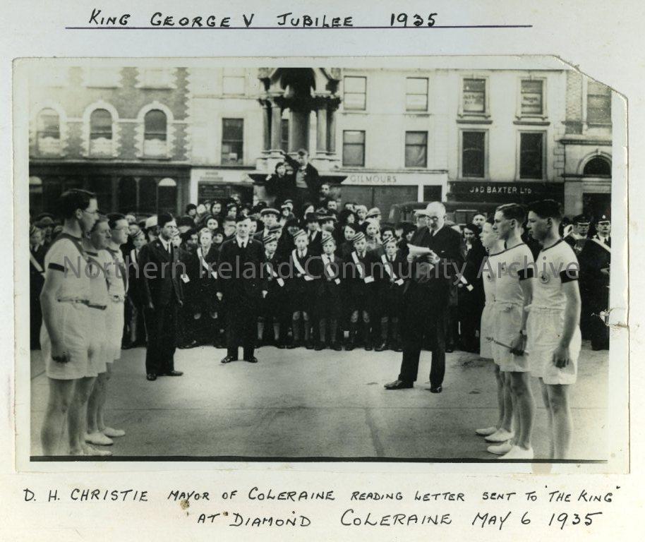 King George V, Jubilee, 1935: D.H. Christie, Mayor of Coleraine, reading letter sent to ‘The King’, At Diamond, Coleraine, May 6 1935 (2562)