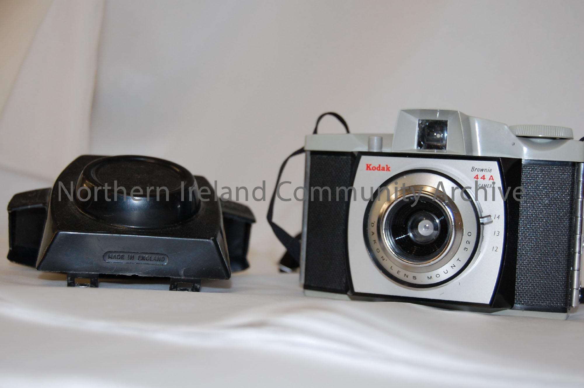 Kodak Brownie camera 44A, with strap. Includes plastic cover.