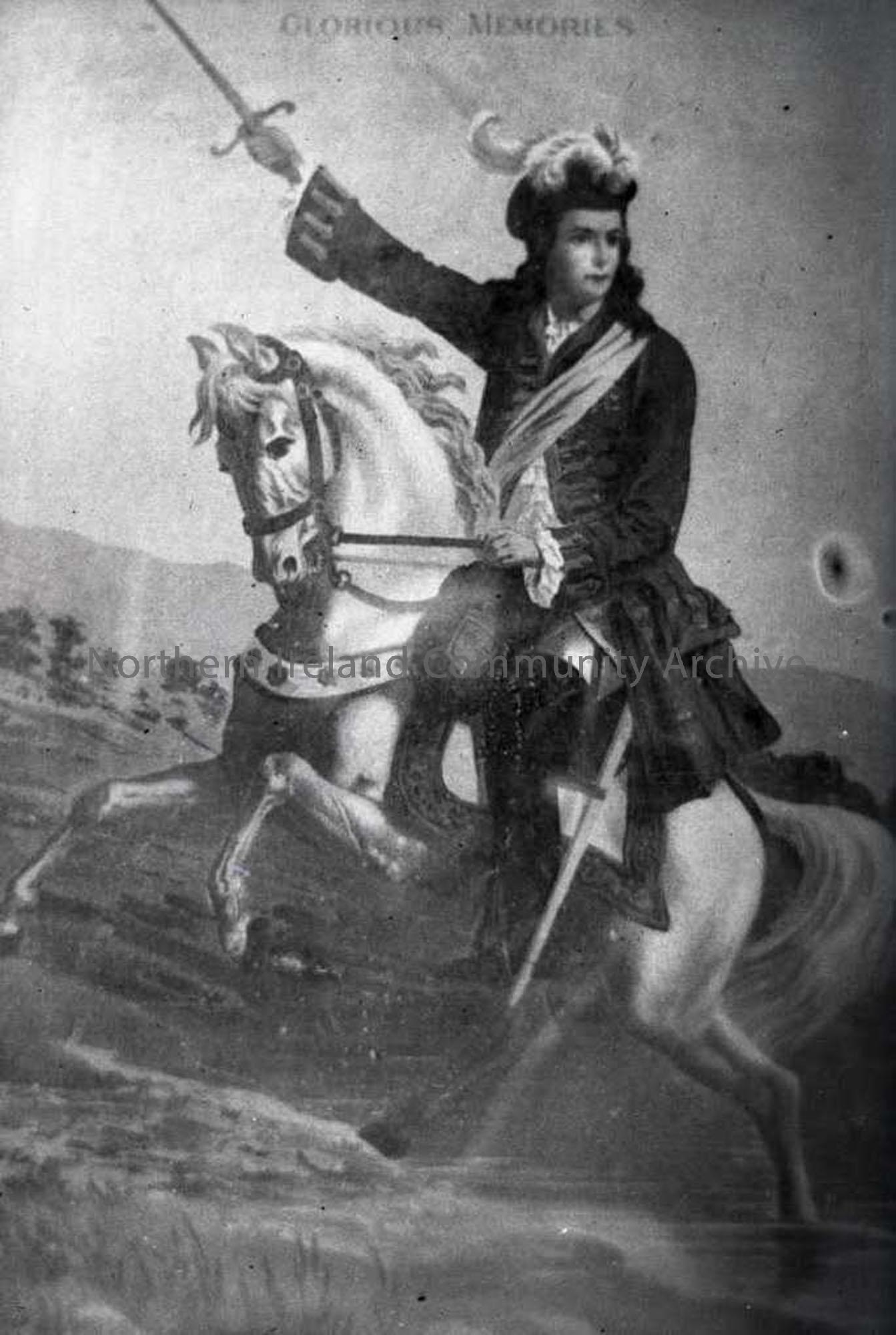 Black and white plate of King William III onhorseback. No 190 on Nature Slides inventory