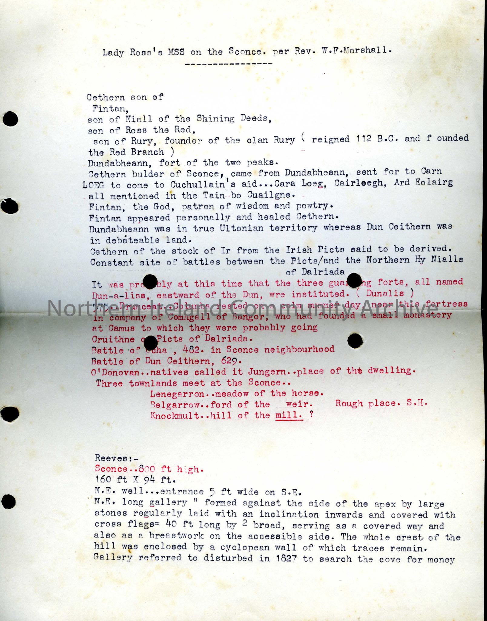 Lady Ross's MSS on the Sconce per W. F. Marshall