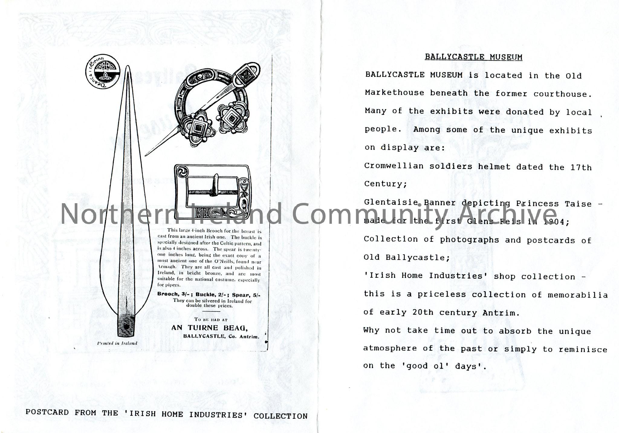 Leaflet Ballycastle Museum from the time of the Irish World Heritage Organisation. – BC.94.327.b