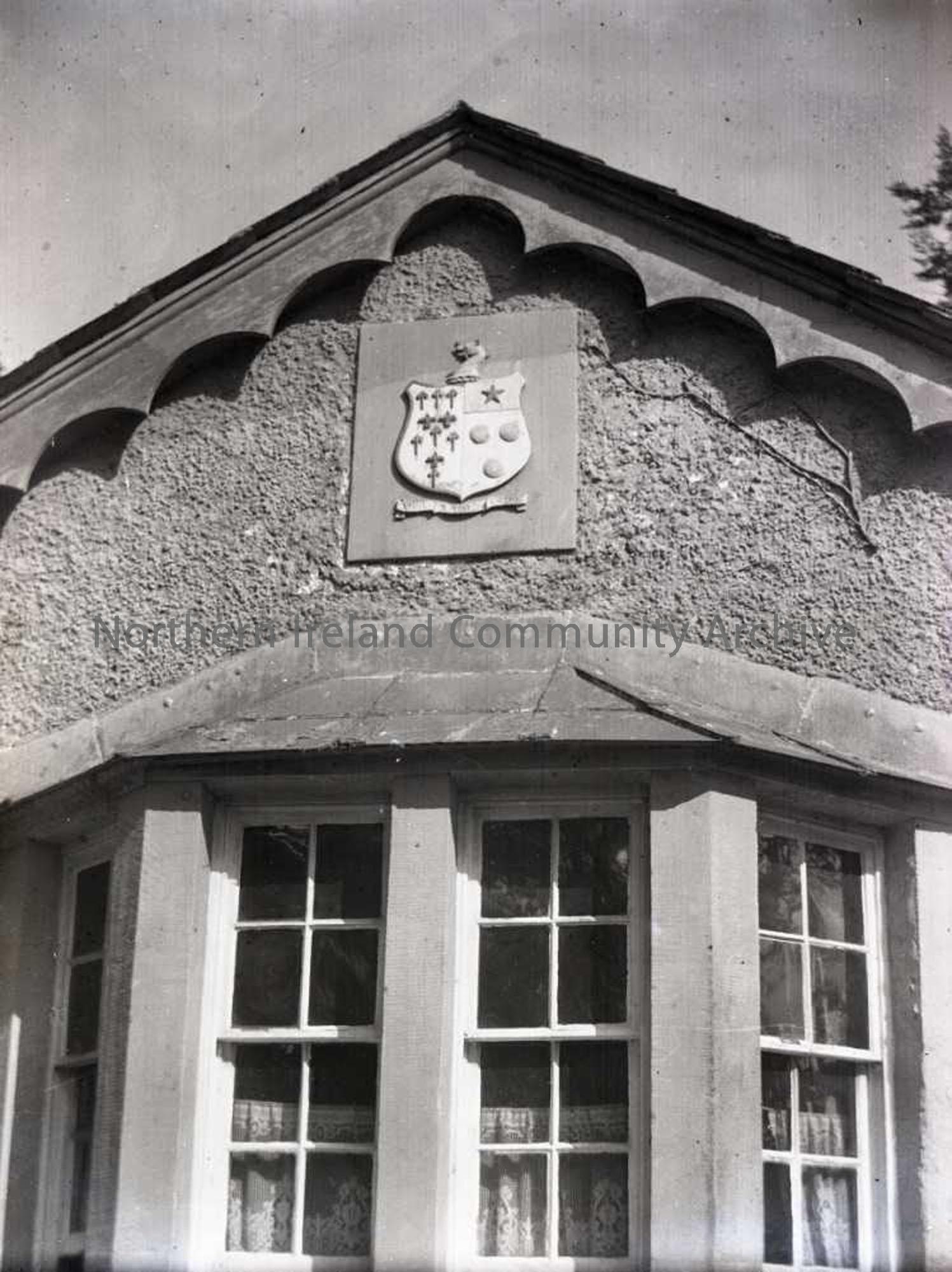 Close-up of detail - window and crest - on porter's lodge at Learmont. No 95 on Nature Slides list