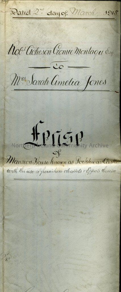 Lease of Mansion House known as Portstewart Castle, dated 2nd March 1915