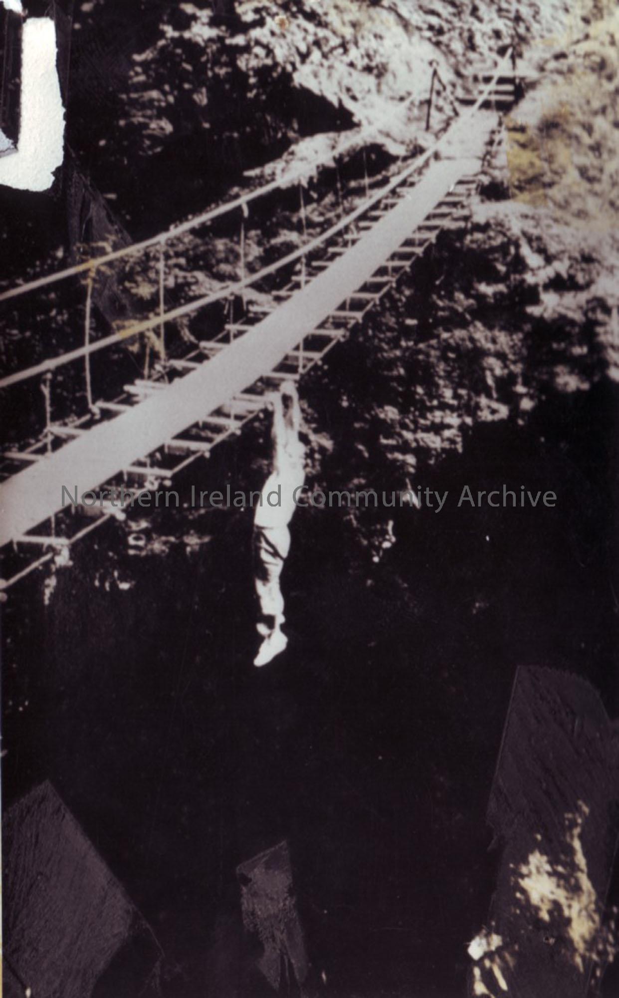 Leslie McCurdy, Athlete hangs off of Carrick-a-Rede rope-bridge