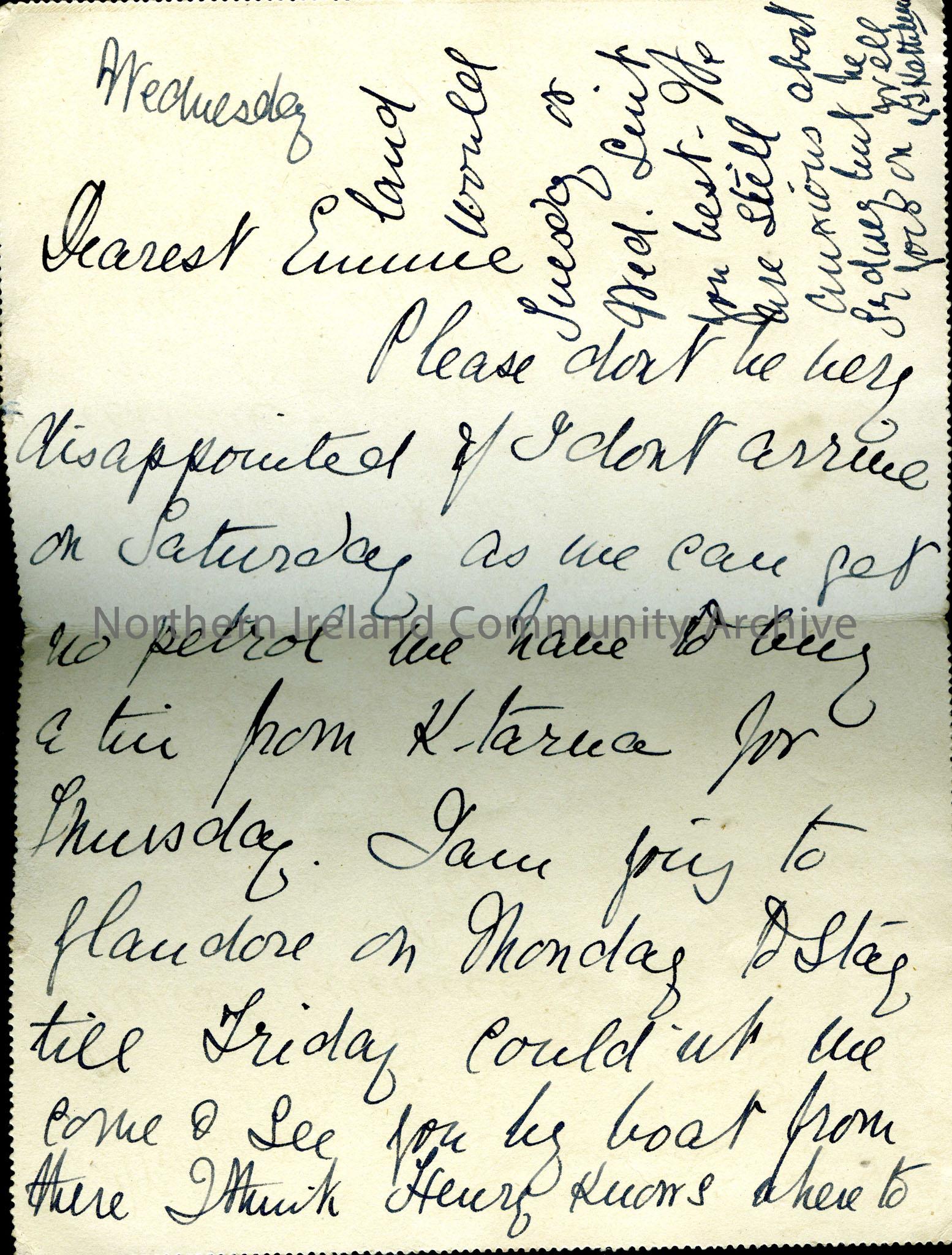 Letter card from a friend. Undated. mentions lack of petrol, K-tarna and Glandore. – scan031b
