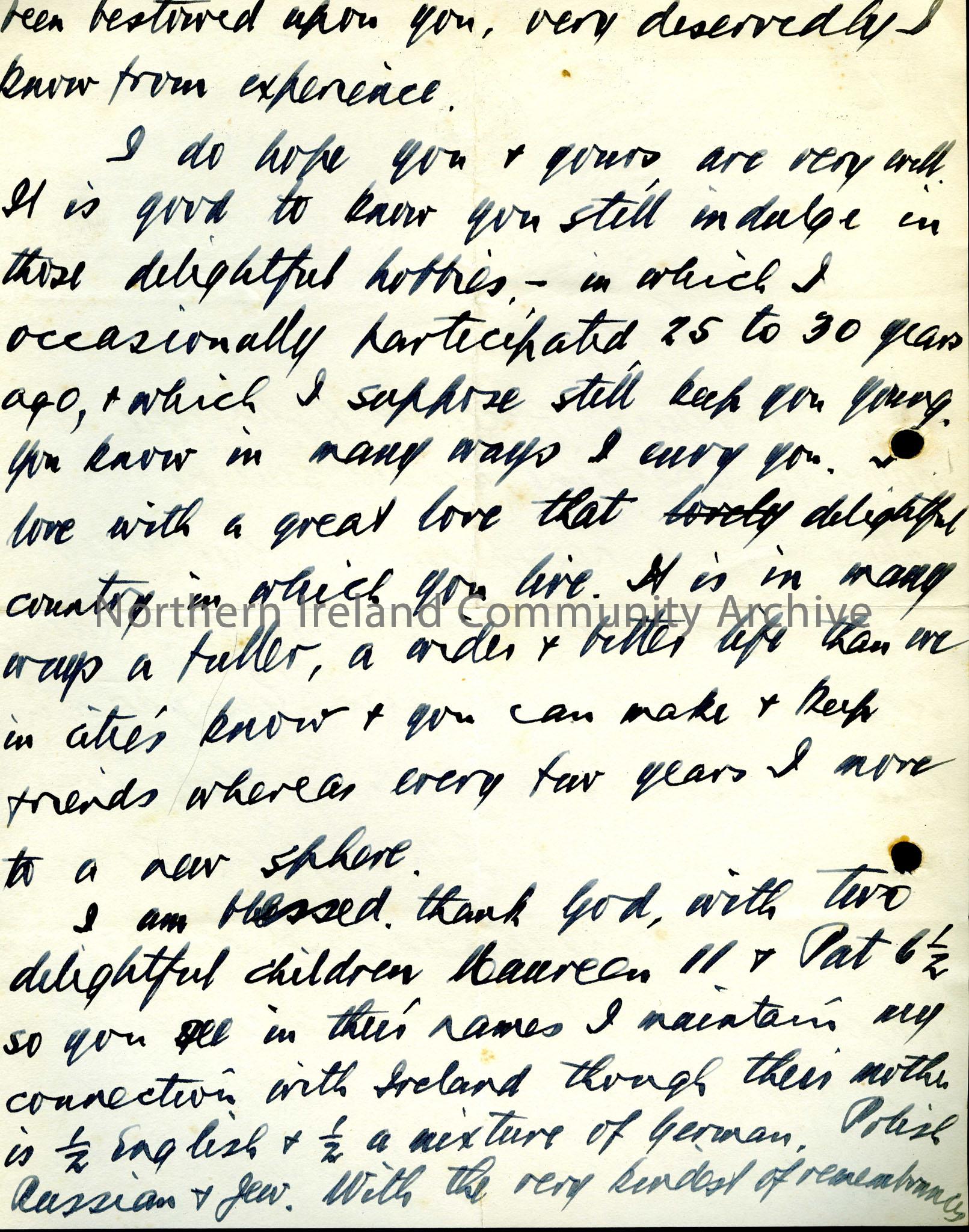 Letter congratulating Sam on being made a Fellow of the Royal Society of Antiquarians. The writer mentions H. McAfee, a retired customs officer who is a native of Coleraine.