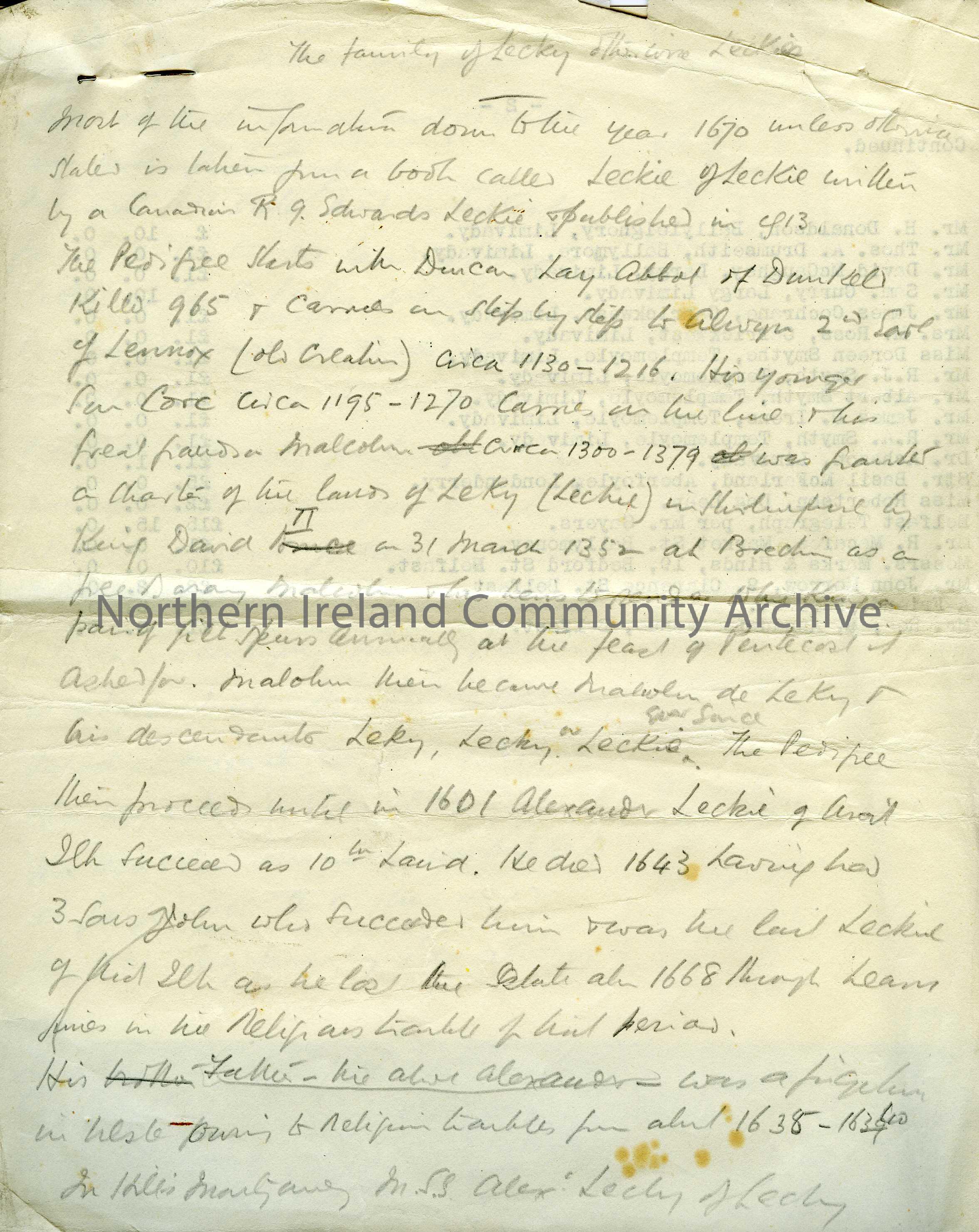 letter detailing the family tree fo the Lecky family. With documents maping names and movements of address (5820)