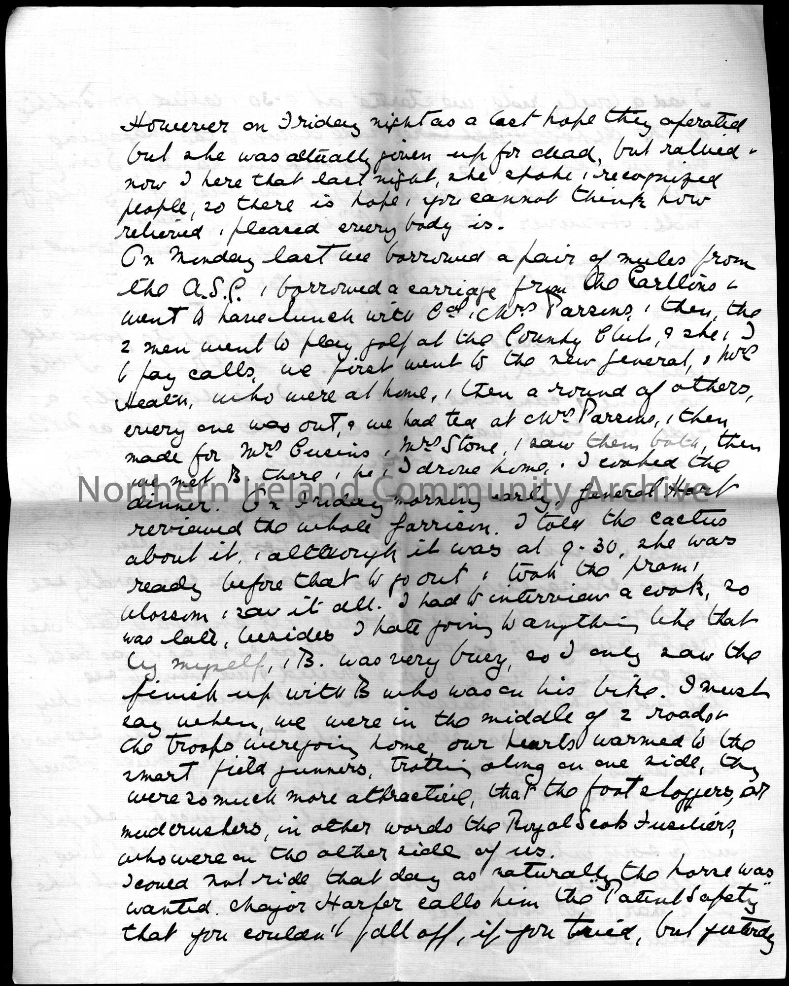 letter from Dorothy Arter Hezlet to her mother from Pretoria, Roberts Heights, dated Sun April 21st 1912. Dorothy writes that her mother is currently in Richmond. She writes of a Mrs Blair and her recovery after falling from a horse. Dorothy writes of her love of riding horses.