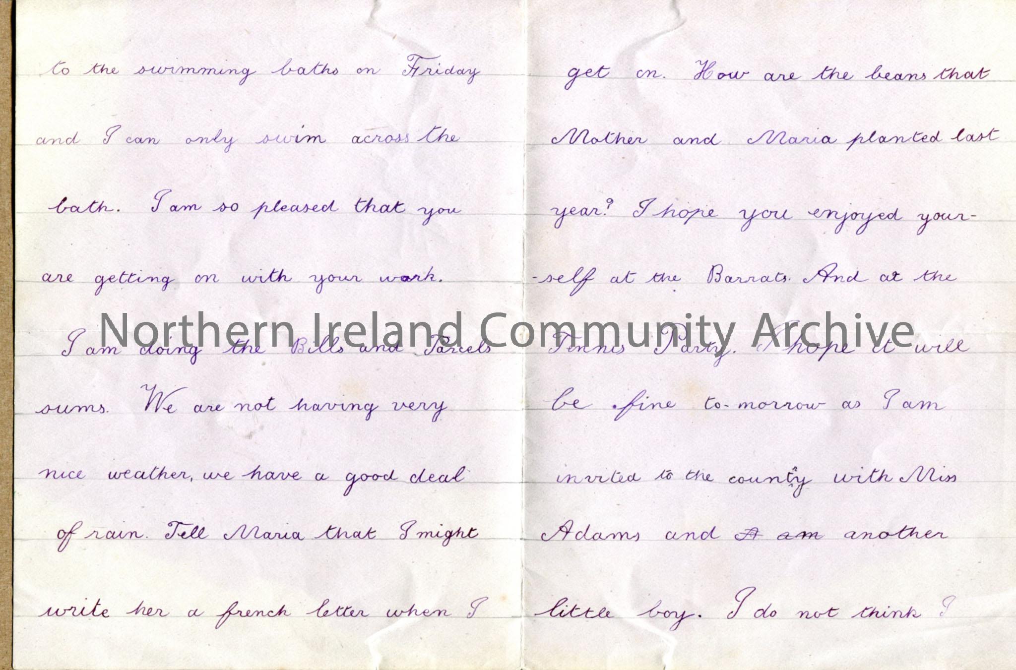 Letter from Erland to Bertie, wishing him happy birthday. Small hand drawn and coloured flower top left. Erland is in France and can swim across swimm… – img116b