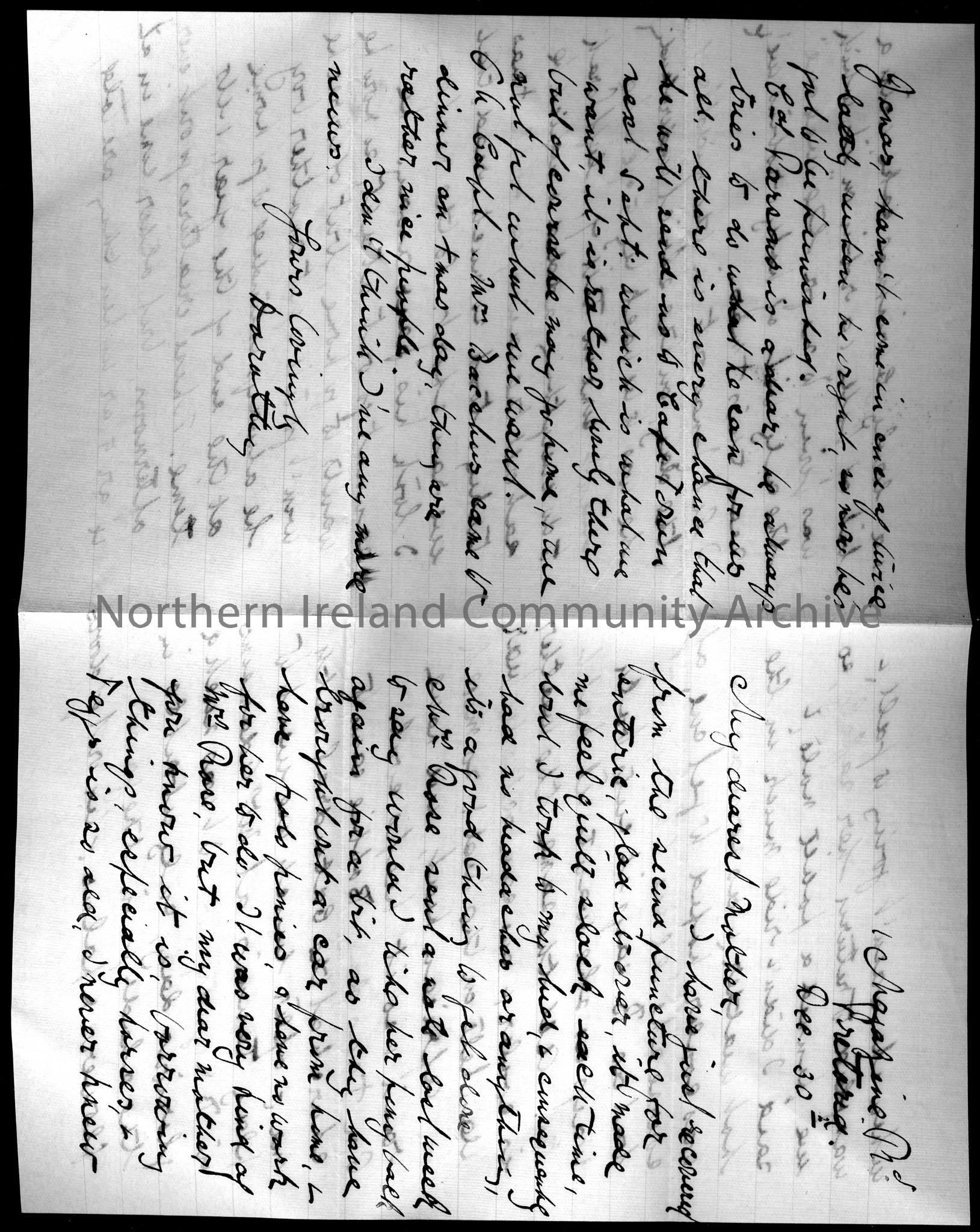 letter from Lady Dorothy Arter Hezlet to her mother from 1 Magazine Road, Pretoria, Dec 30. She writes how she and Bobbie, her husband, went to Church…