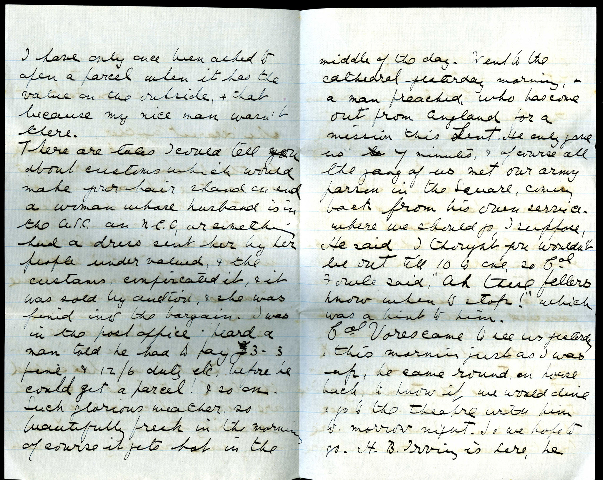 letter from Lady Dorothy Arter Hezlet to her mother from 1 Magazine Road Pretoria Mon Feb, 24th. Dorothy writes that her mother sent her jewellery. She went to the cathedral and a man from England was preaching for a mission during Lent.