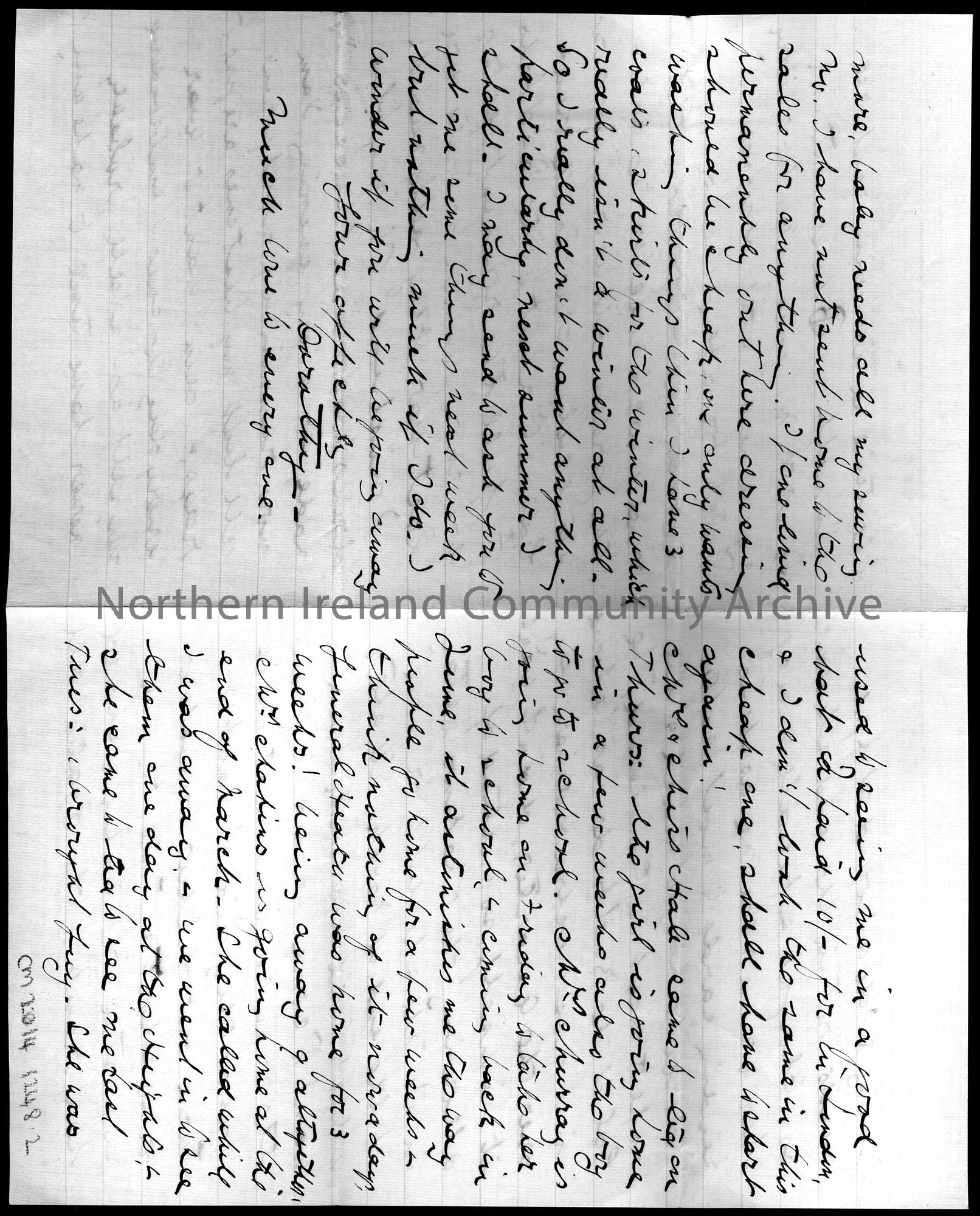letter from Lady Dorothy Arter Hezlet to her mother from 1 Magazine Road Pretoria Mon Feb, 24th. Dorothy writes that her mother sent her jewellery. She went to the cathedral and a man from England was preaching for a mission during Lent.