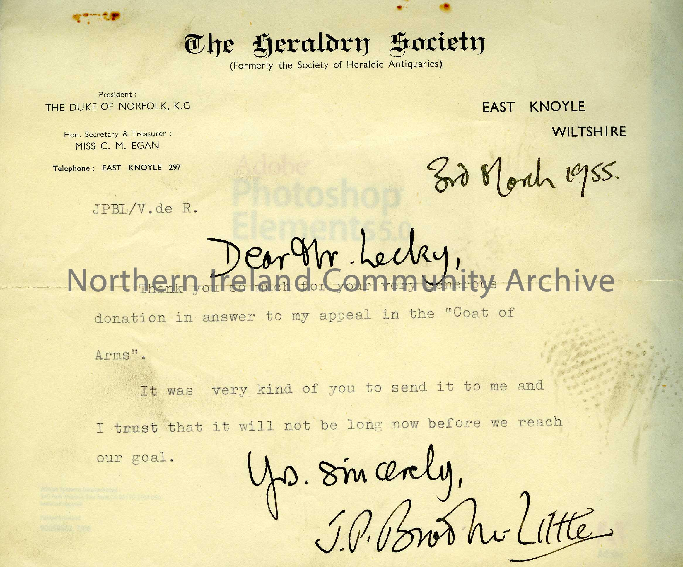 letter from ‘The Heraldry Society’ to Mr Lecky (6793)