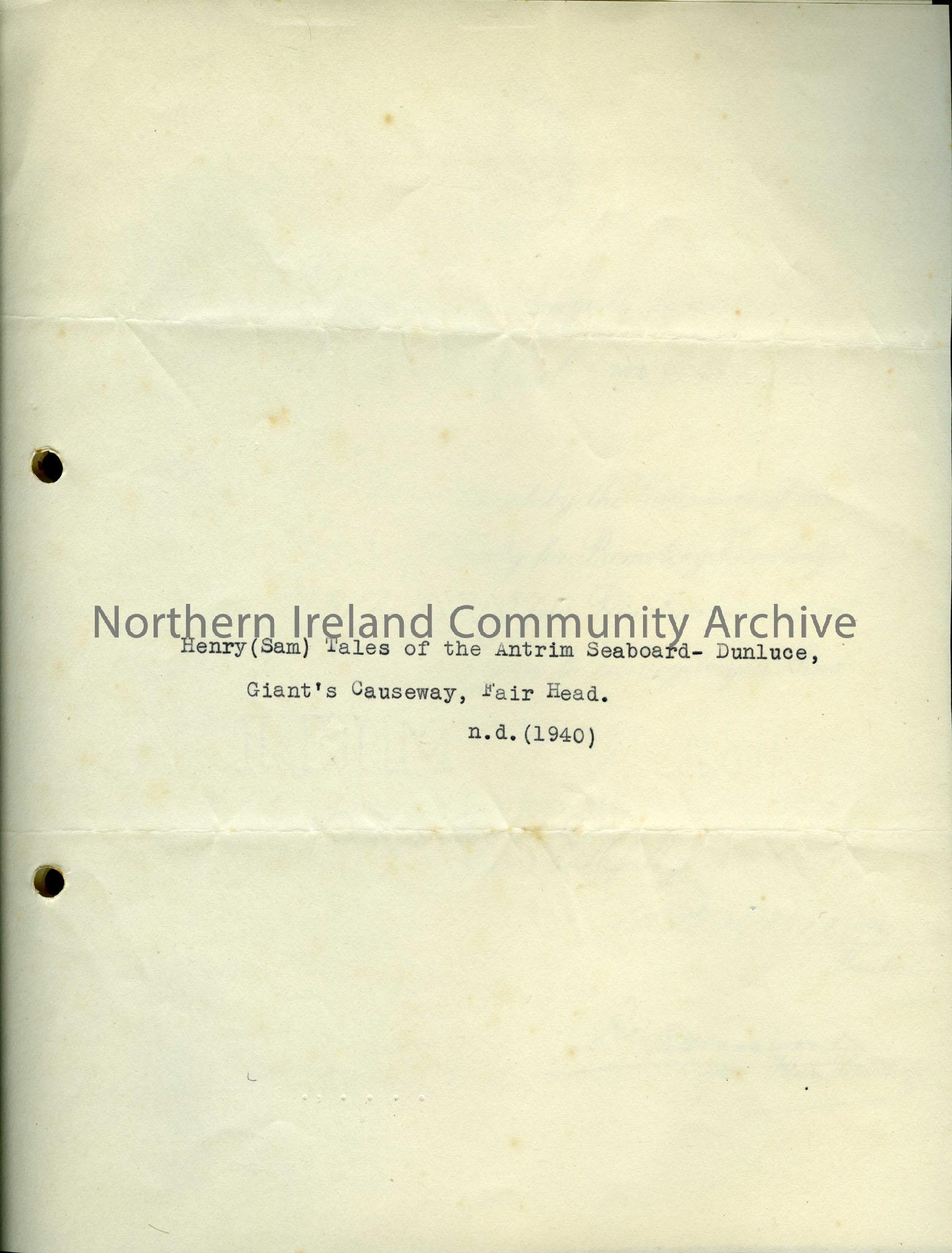 Letter from the Linen Hall Library thanking Sam Henry for donating a copy of “Tales of the Antrim Seaboard – Dunluce, Giant’s Causeway, Fair Head”. Si…