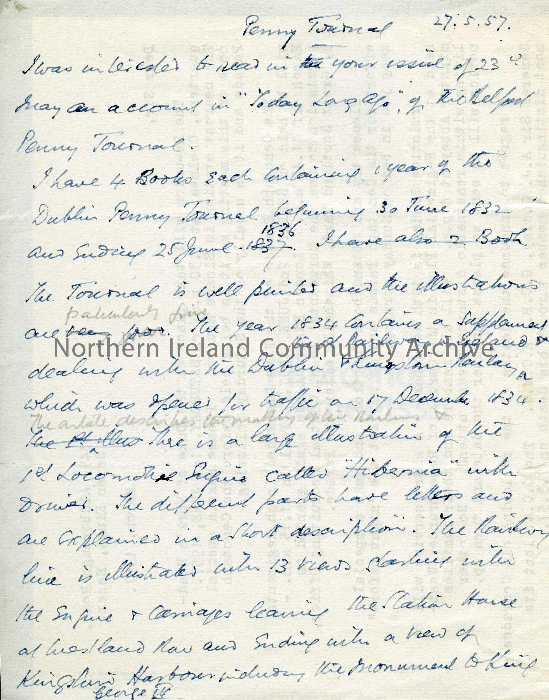 letter , titled 'Penny Journal 27.5.1957
