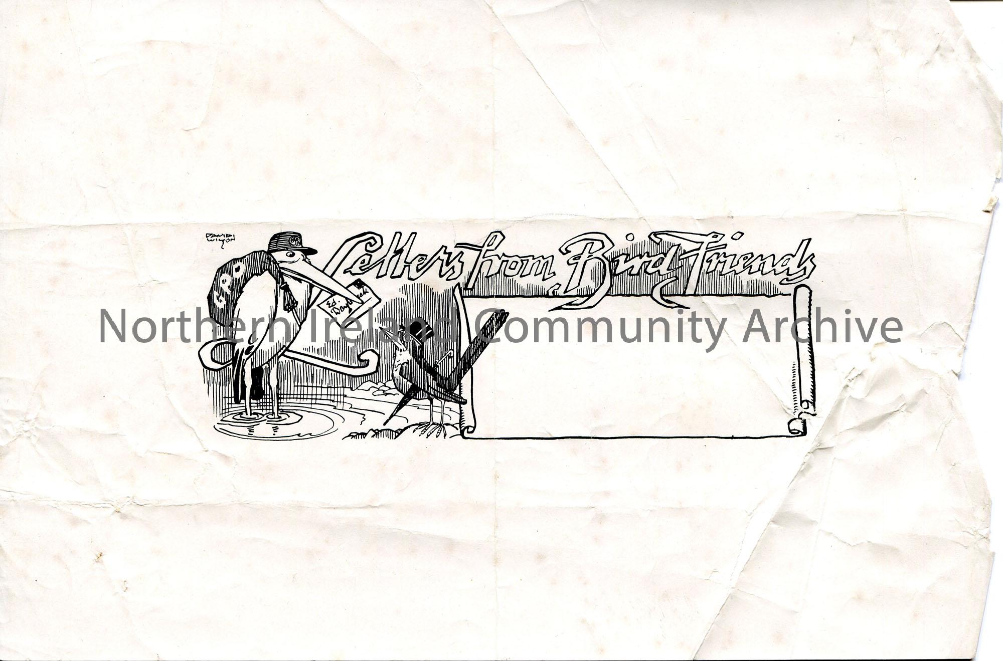 ‘Letters from Bird Friends’ illustration. Template for articles published in ‘Daybreak’ written from a bird’s point of view by Sam Henry, 1915-1917.