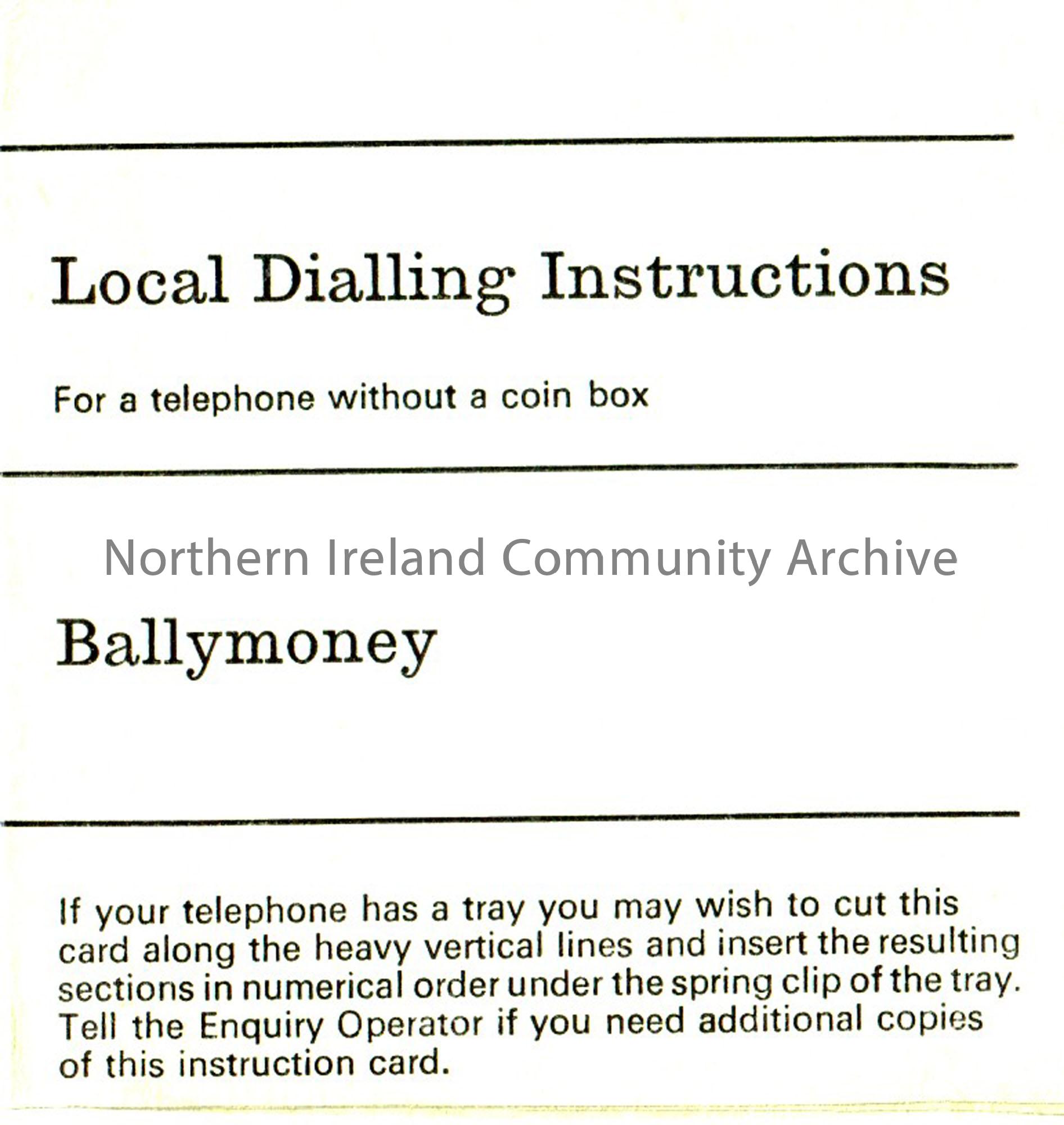 Local Dialling Instructions for a telephone without a coin box, Ballymoney