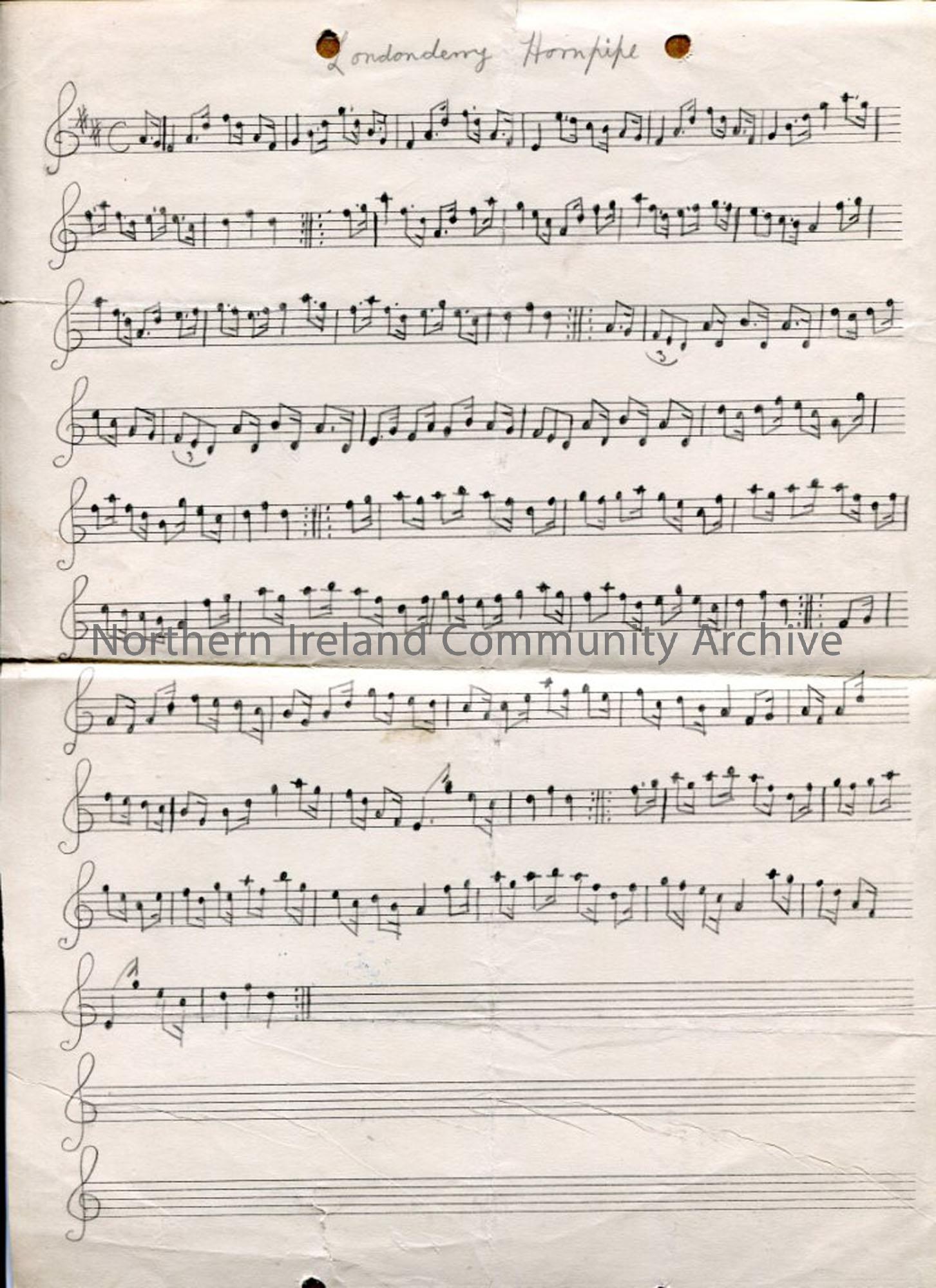 Hand drawn staff notation to 'Londonderry Hornpipe'