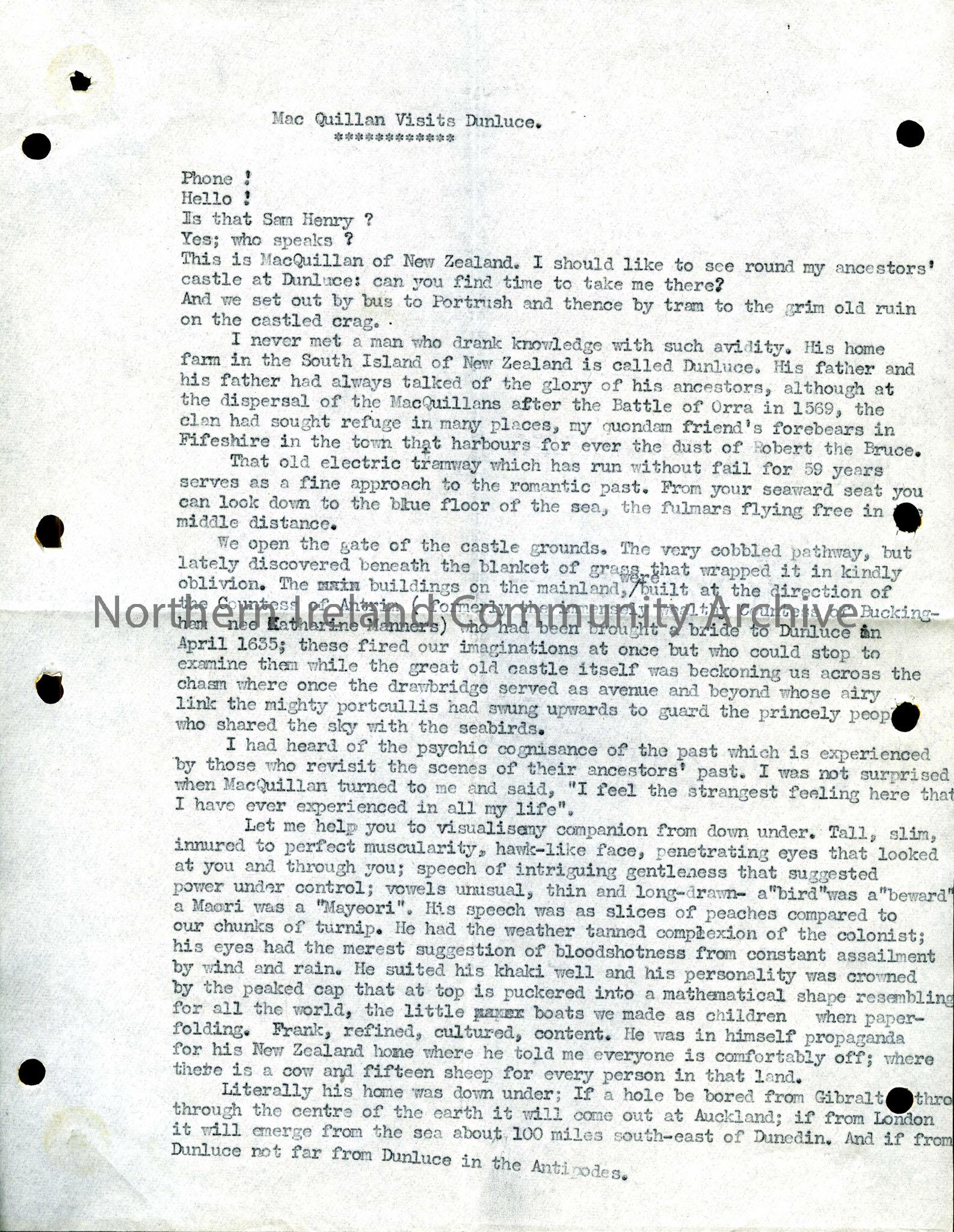 MacQuillan visits Dunluce. – Article on a visit to Dunluce castle with a MacQuillan descendant from New Zealand.