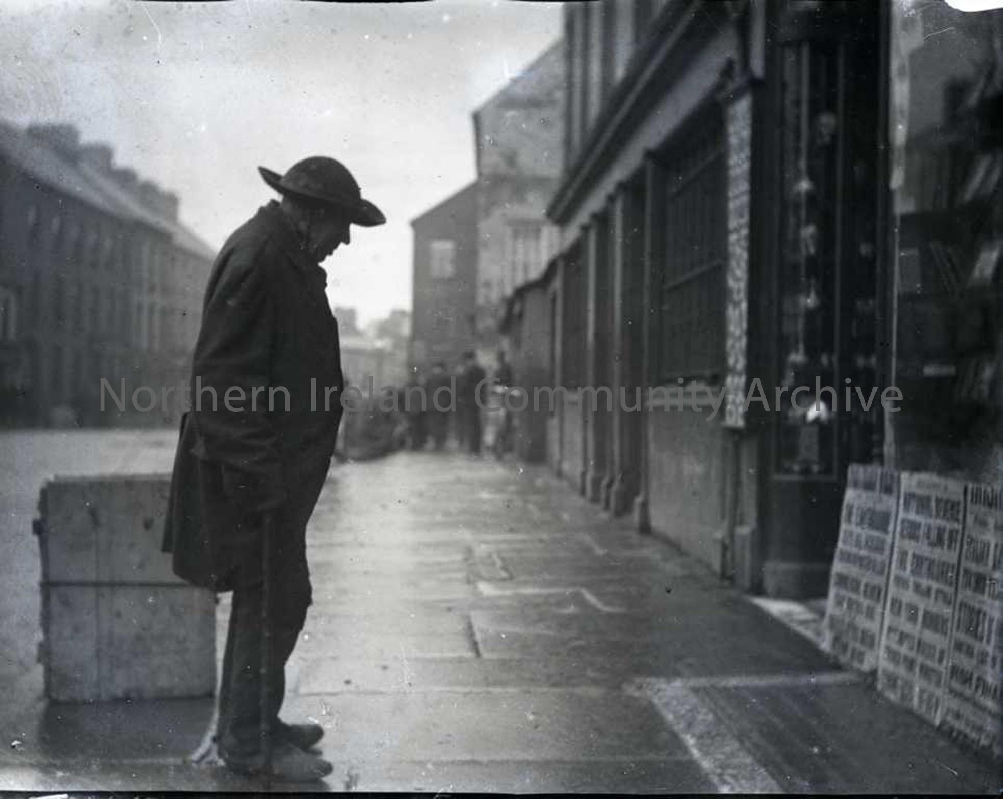 Man reading newspaper billboard