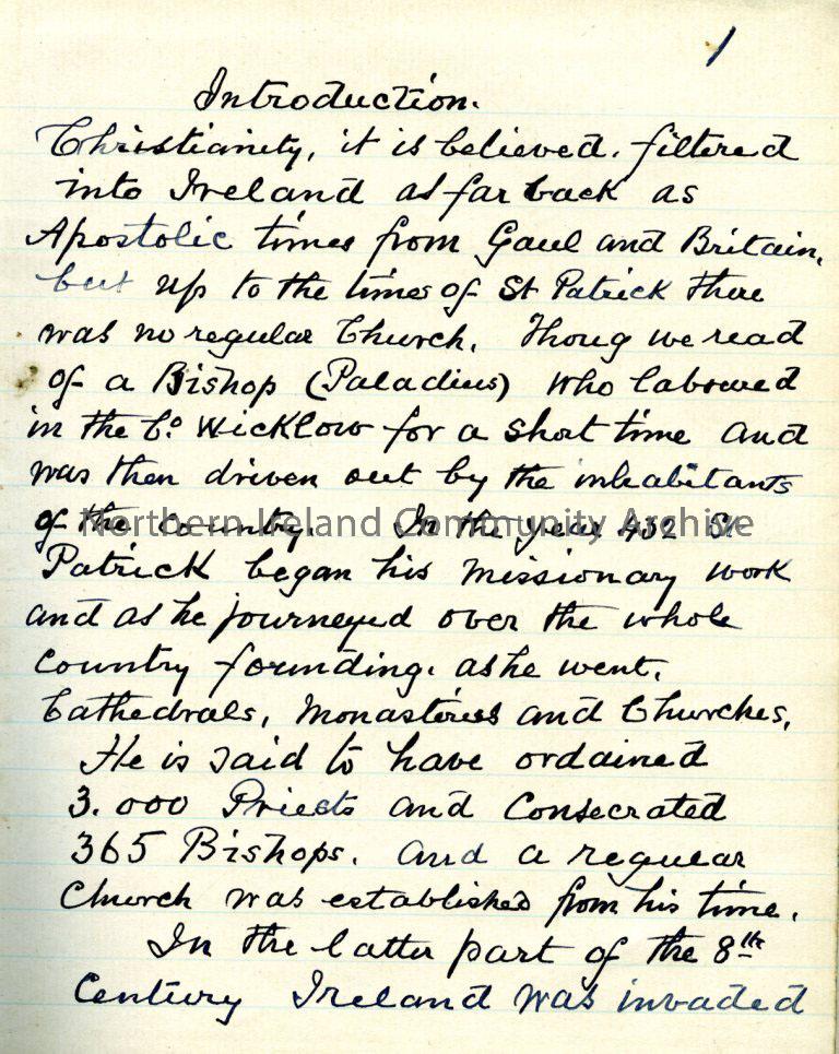 Manuscript history of Union of Errigal and Dessertoghill, Co.Derry, by Lt.Col. McCausland, Garvagh. Copied by Rev. W.M Morrison in 1922. A5 sized hard backed book, handwritten inside with index.