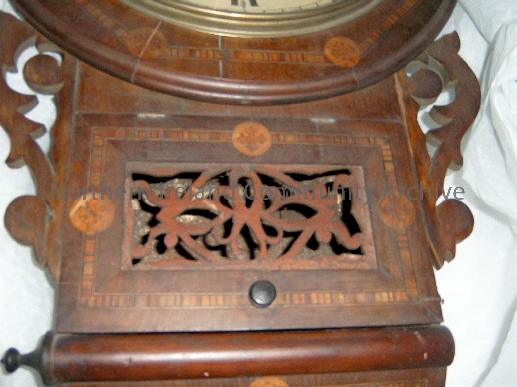 wooden clock removed from the market yard site, for safe keeping. To be reinstated when museum opens