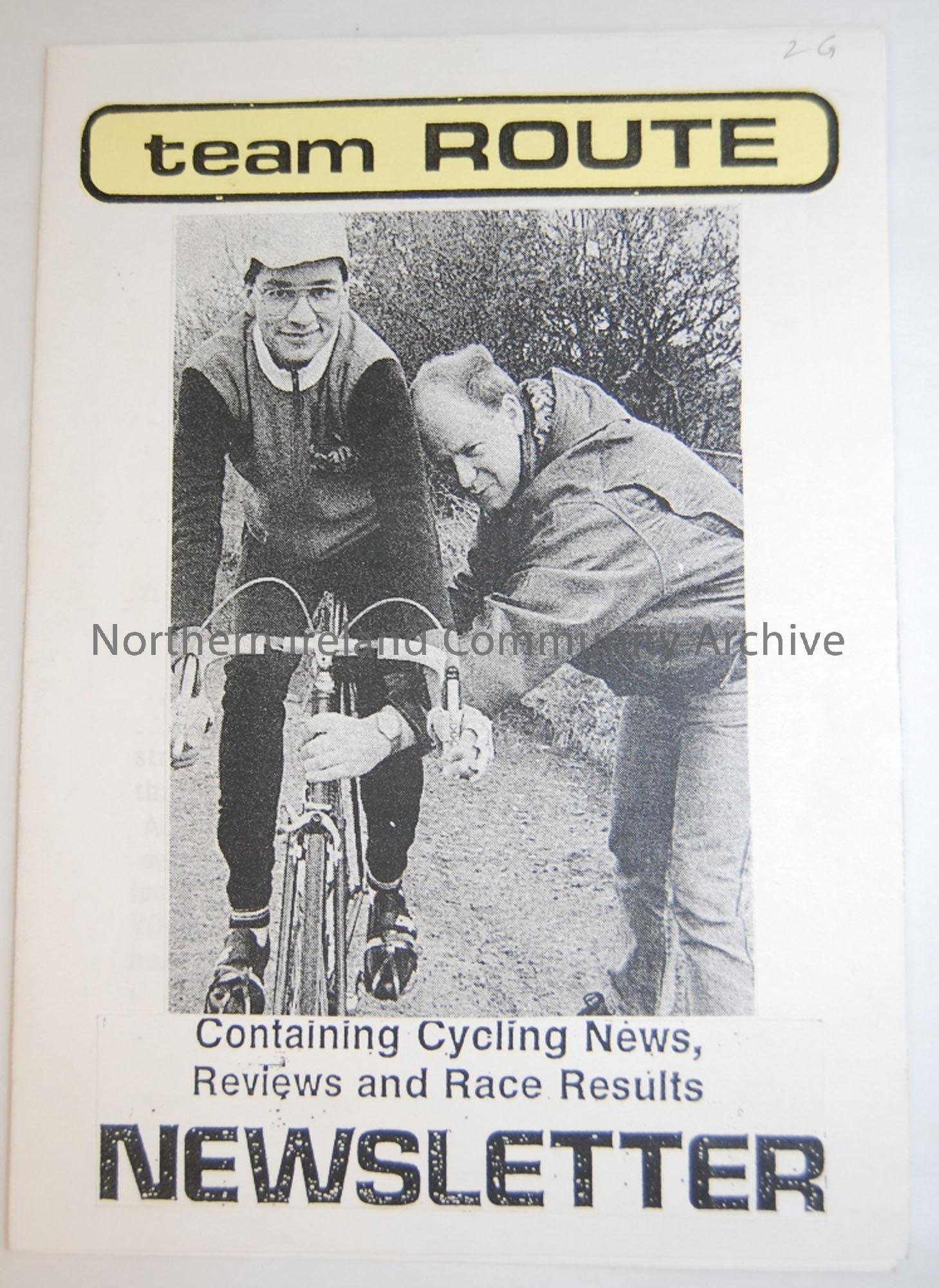 Master copy of the Team Route Newsletter March/May. Magazine of the Ballymoney and district cycle club containing cycling news, reviews and race results.