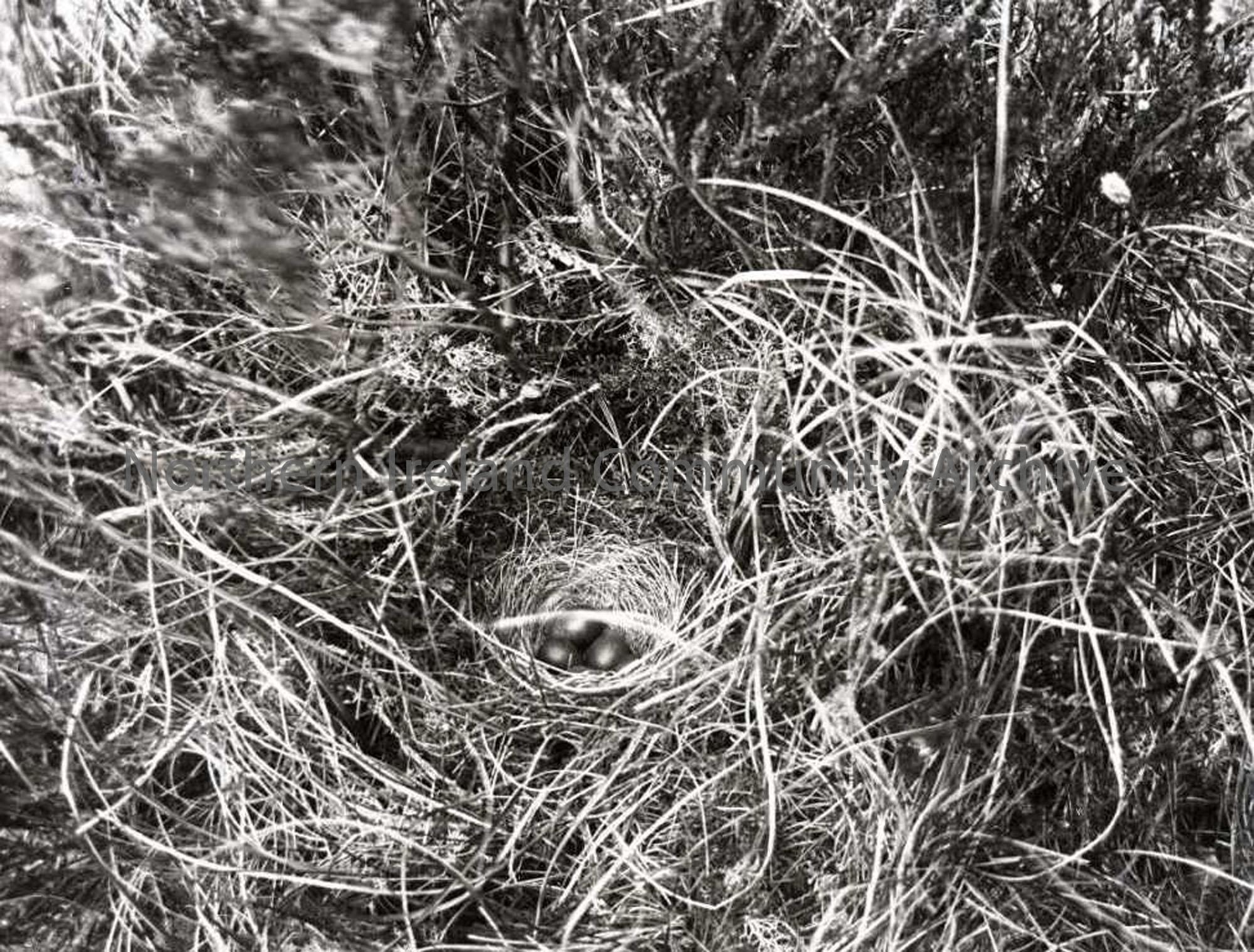Entitled meadow pipits nest - eggs in nest amongst grass and heather. No 139 on Nature Slides inventory