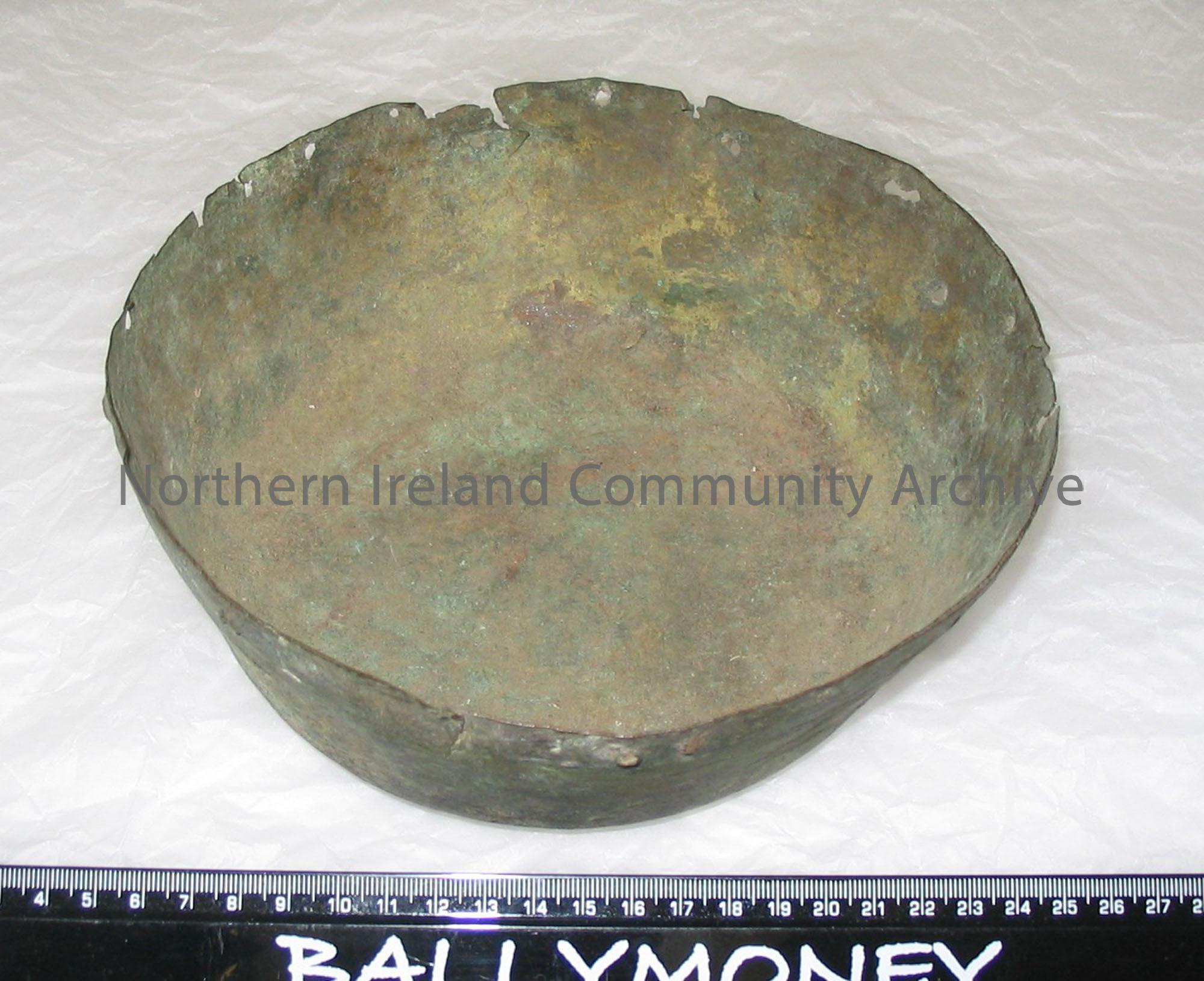 Medieval copper alloy bowl, made from a single sheet