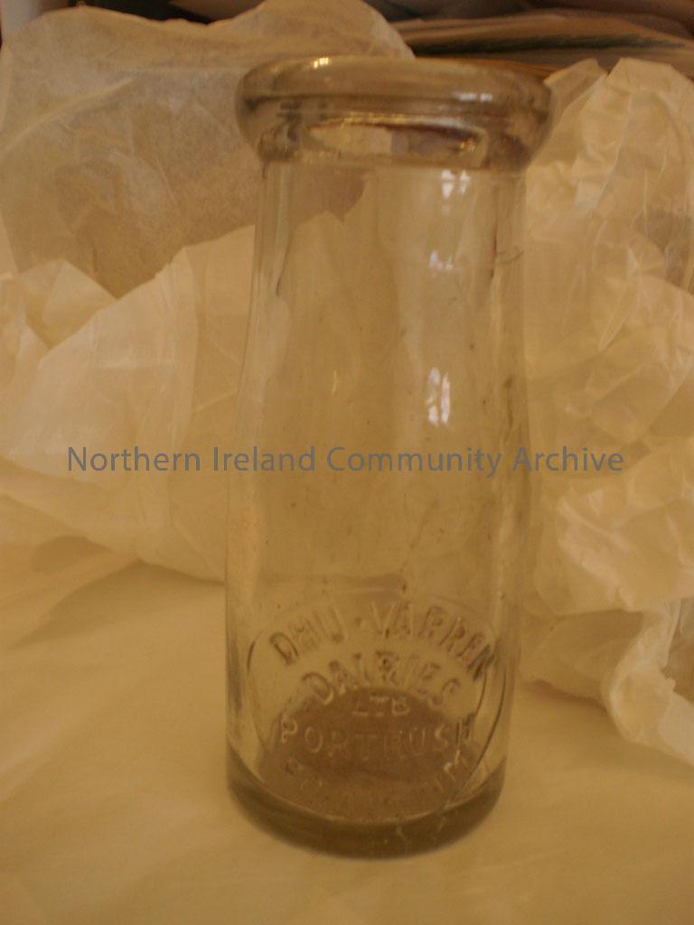 Milk bottle with ‘Dhu-Varren Dairies Ltd Portrush’ embossed on it