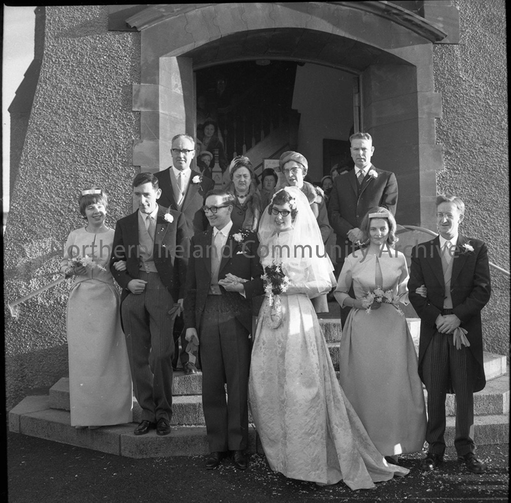 Mr Wm Davis Milligan, Altnagelvin, Londonderry and Miss Margaret Mary Ryde, Portstewart, married in Portstewart Presbyterian Church, December 1962. Bridesmaids were Miss Mary McVeigh and Miss Alison McVeigh. Mr Robert Dunn was best man and Mr Cecil Milligan as groomsman.