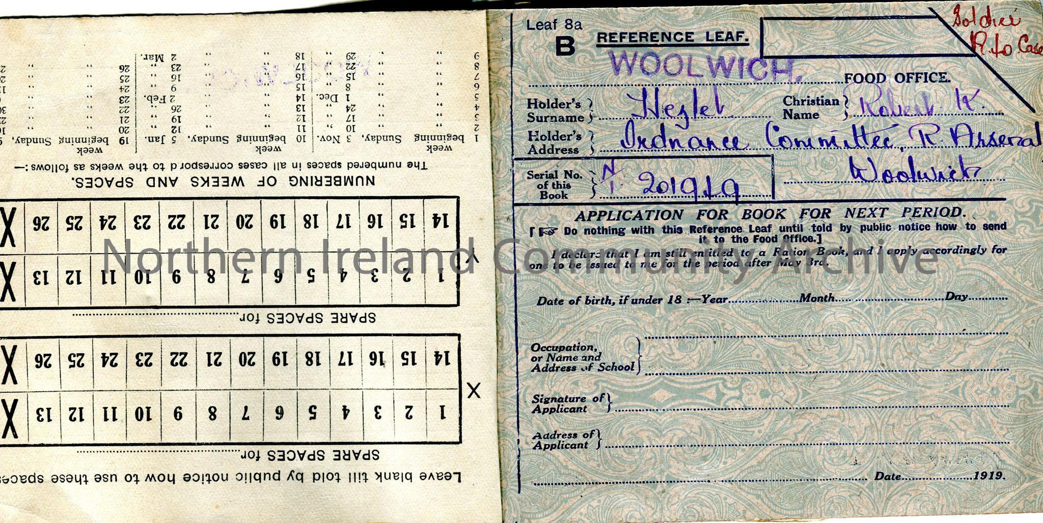 Ministry of Food National Ration book of Robert K Hezlet during WWI – img132c