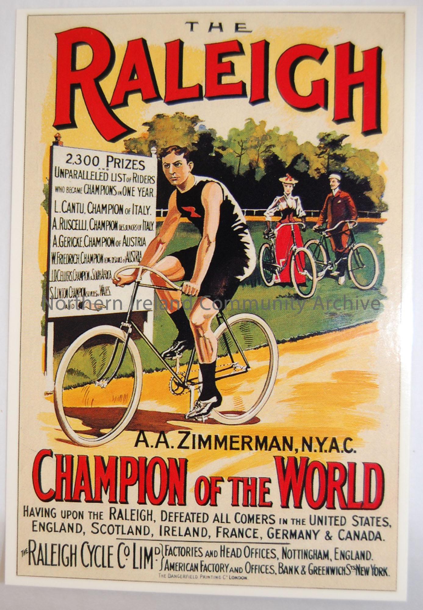 modern reproduction of Raleigh postcards, titled ‘ Raleigh Champion of the World.’