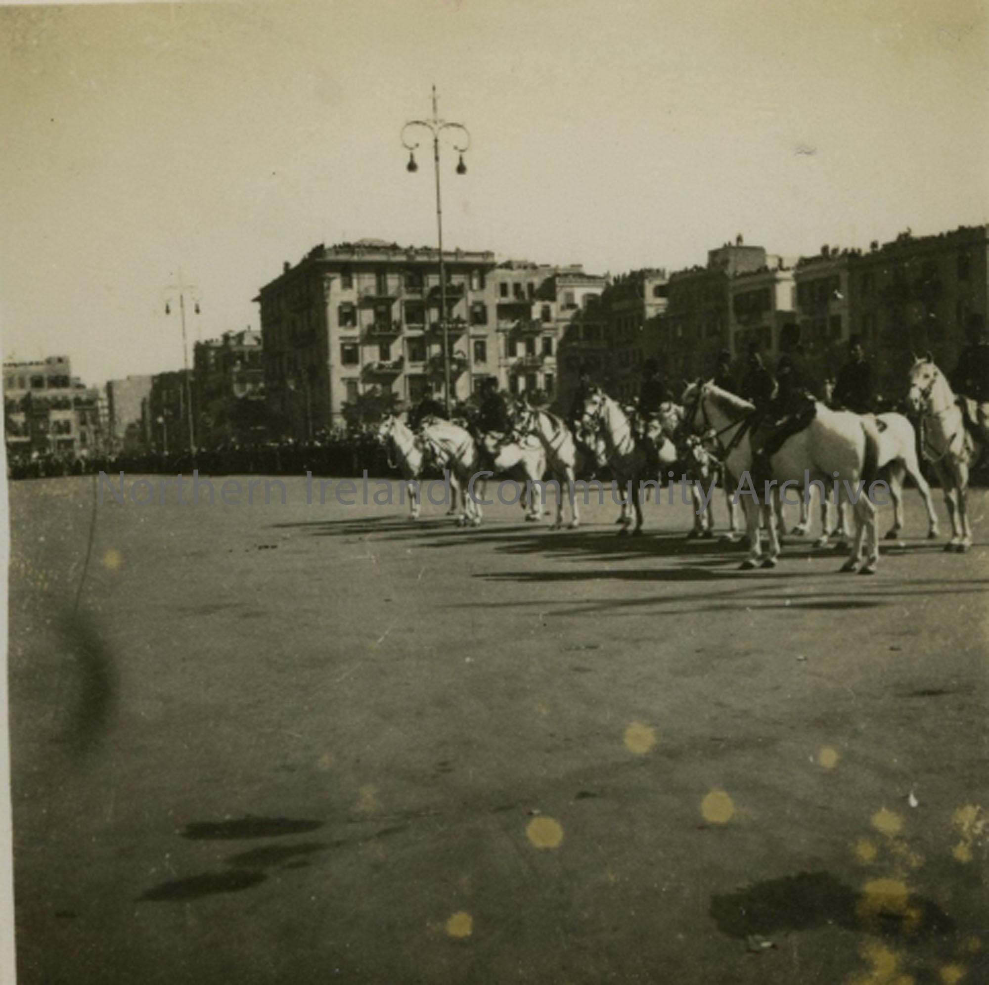 Mounted Guards on white horses.