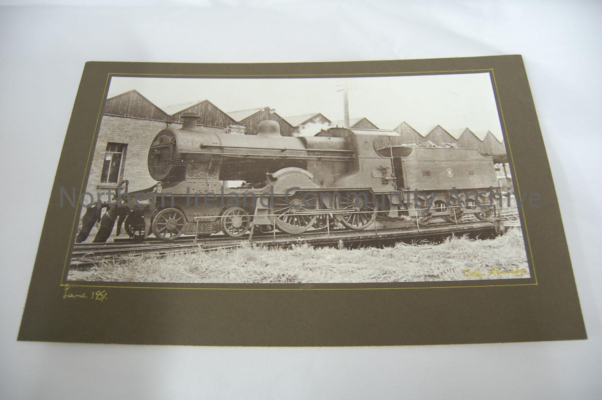 Mounted photograph of Broad Gauge Castle Class No.81 ‘Carrickfergus Castle’ at Larne Harbour 1951 on the turntable- Sean Kennedy Photograph