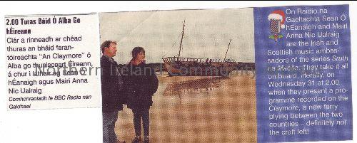 celebrating the historic links between Ballycastle and Islay, particularly the Lammas Fair, of which Portnahaven claims to be a co-founder. See 'The Wreck of the Exmouth' by J. Wiggins.